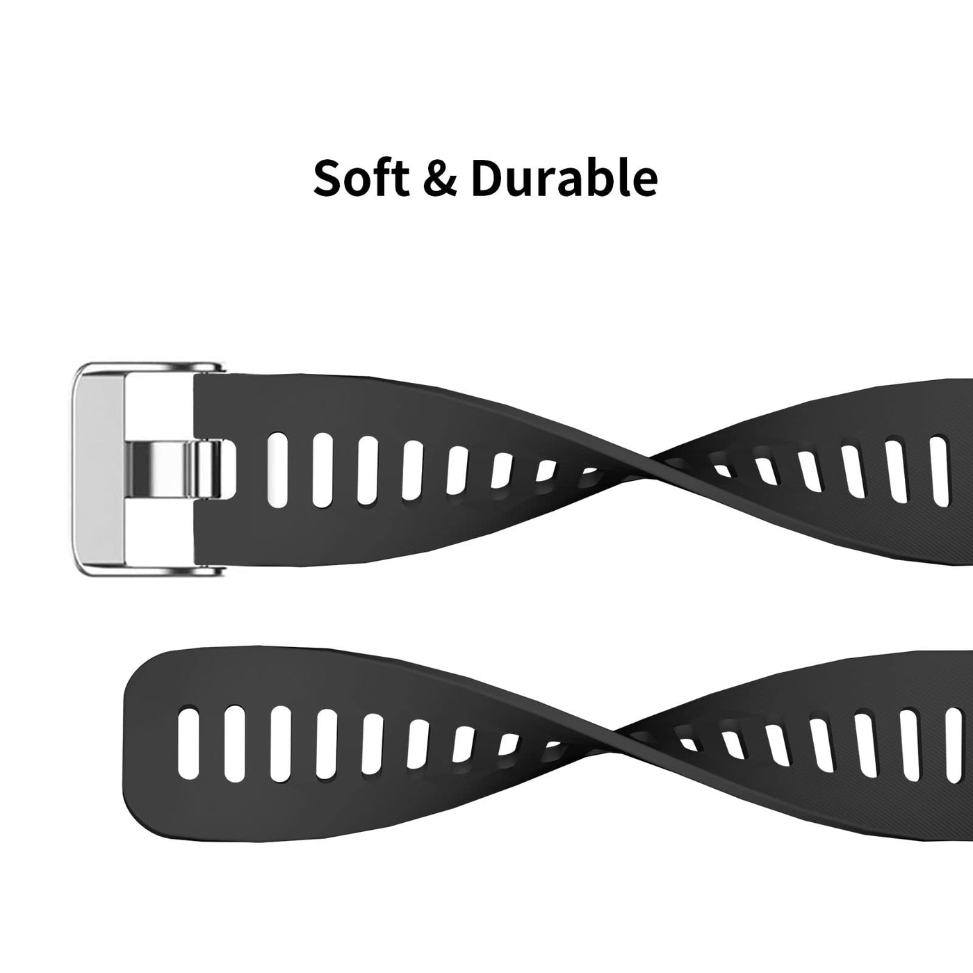 Q: What material is the BaayCerrie replacement band made from?A: The BaayCerrie replacement band is made from high-quality, environmentally friendly silicone material that is soft, durable, and harmless, providing comfort during sports activities.