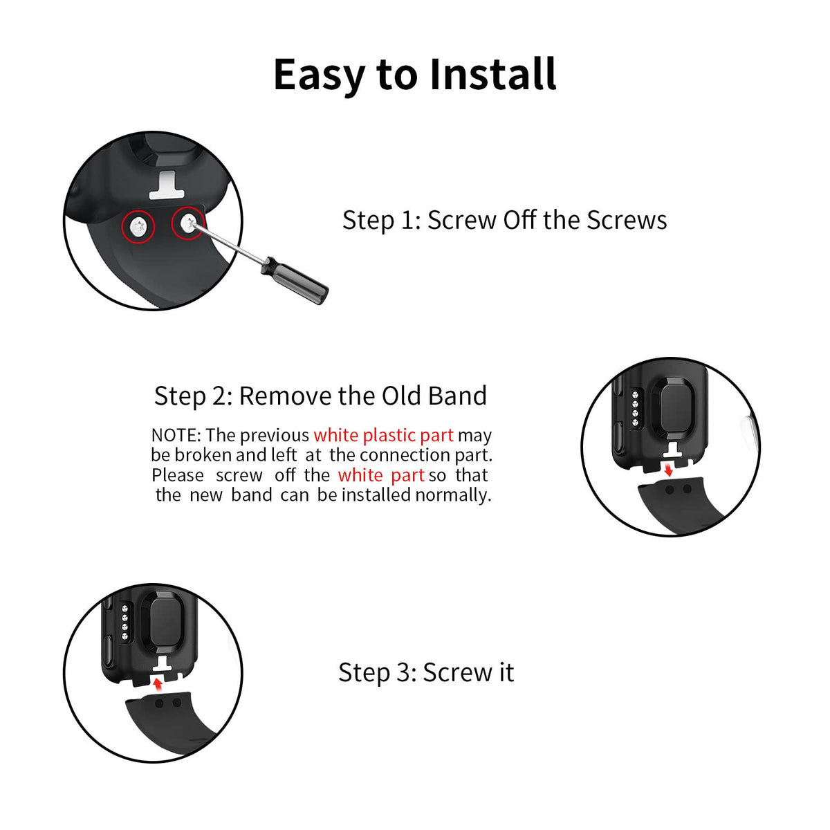 Package Includes: 1 x replacement band 2 x screwdrivers 4 x screws