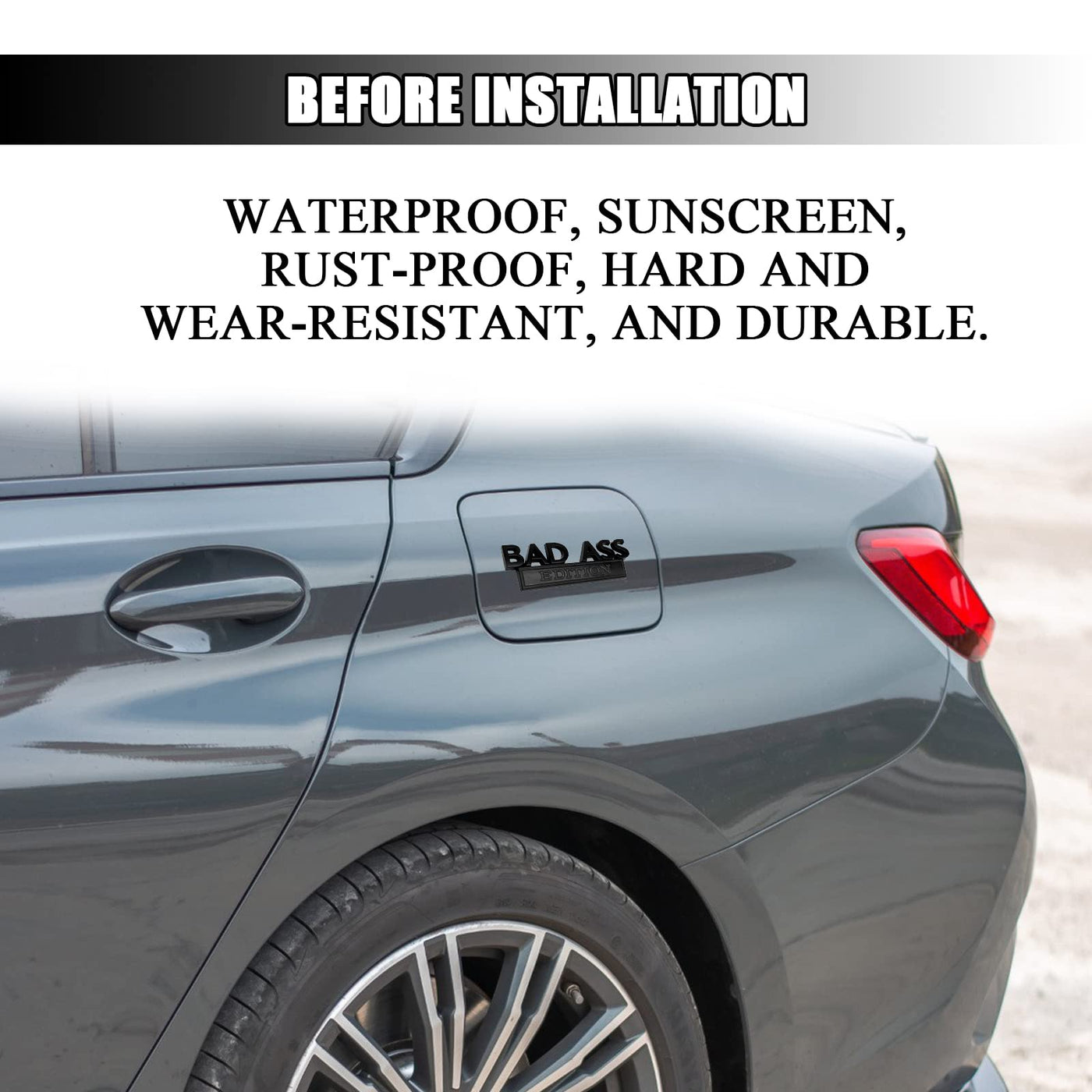 Q: Where can I install the Bad Ass Edition Emblem on my vehicle?A: This versatile emblem can be installed on various parts of your vehicle, including the trunk, fender, bumper, hood, and even the car interior. It can also be used to decorate items such as laptops, tables, doors, and refrigerators.