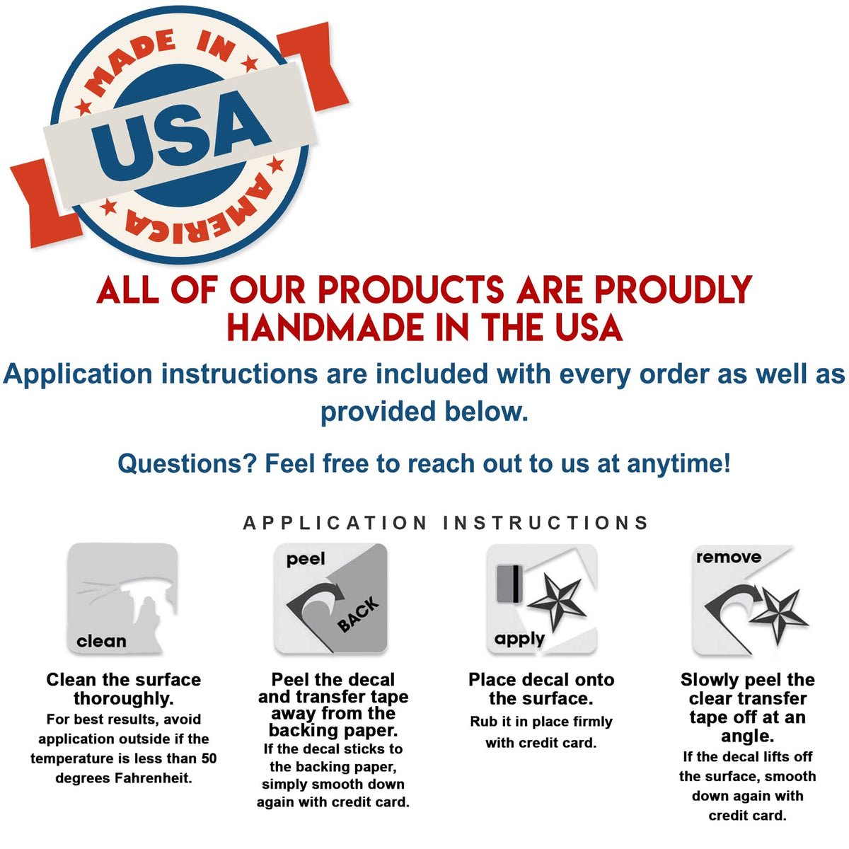 Q: Is the vinyl decal durable for outdoor use?A: Yes, the vinyl used for this decal is UV and water resistant, ensuring it remains intact and vibrant for many years, even when exposed to outdoor elements.