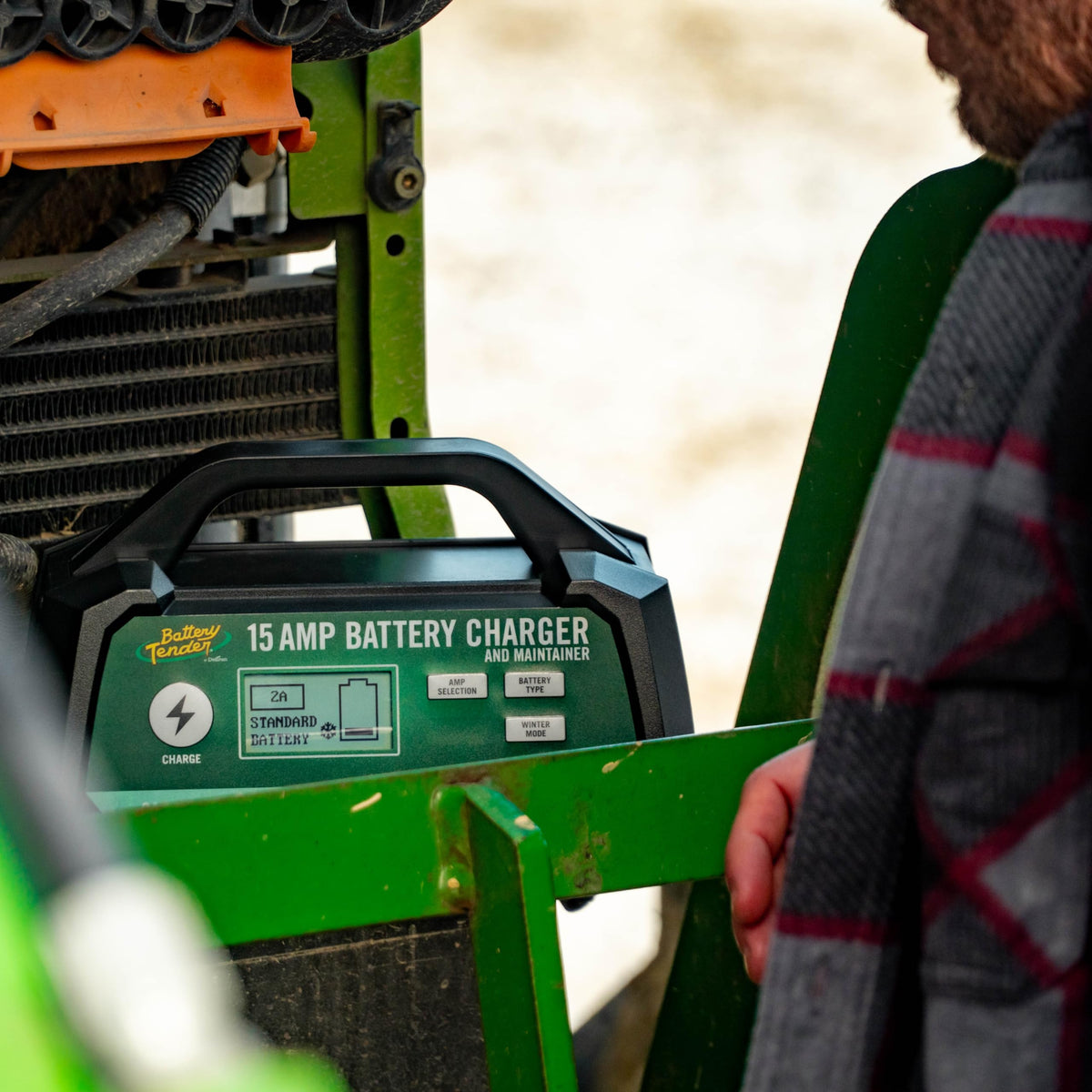 The 15 amp / 8 amp / 2 amp 12V Battery Tender selectable smart battery charger is powerful and versatile! Great for automotive, marine, industrial, and heavy-duty applications. Equipped with an LCD display for easy to read charging status, charging current, voltage, battery type (chemistry), and error messages. The charge rate selection button makes it easy to change from 2amps, 8amps, and 15 amps. All Battery Tender smart battery chargers automatically fully charge and maintain your battery safely for months at a time. It is as easy as connecting the hard-wired clamps to your 12V battery, plugging in the AC power cord, and selecting your charging mode of choice. Battery Tender smart battery chargers extend the battery’s life.