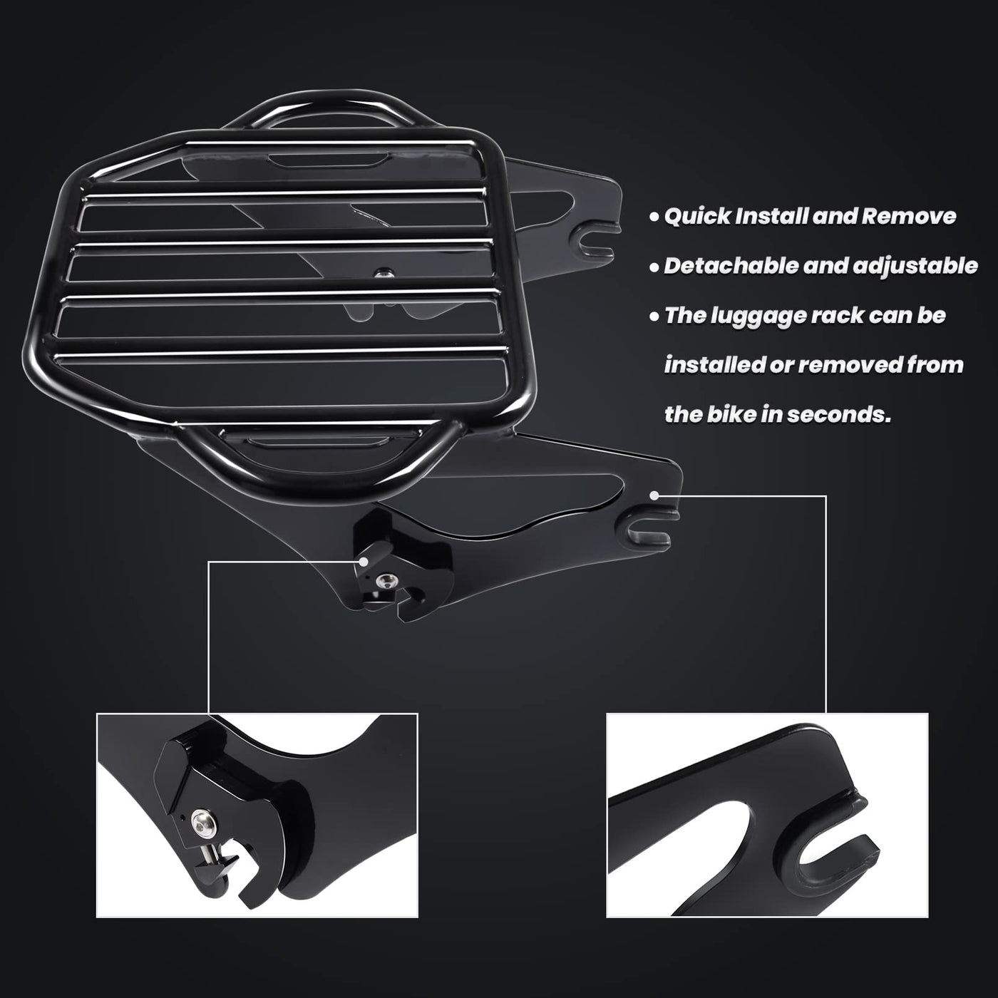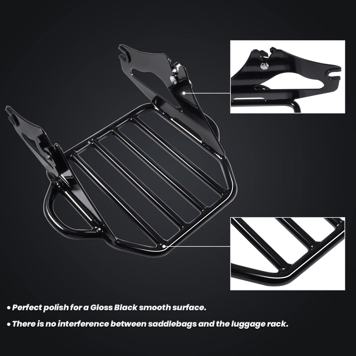 Benlari Gloss Black Detachable Luggage Rack 2-Up Mounting Rack Compatible For Harley Touring Road King Street Electra Glide 2009-2024 2021 2020 2019 2018 2017 2016 2015 2014 2013 2012 2011 2023