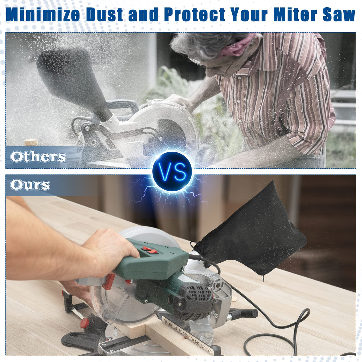 Q: Can this dust bag be used with other tools besides miter saws?A: Yes, this dust collection bag is versatile and can be used with various tools such as edge planers, diagonal saws, and tank belt sanders due to its adjustable design.
