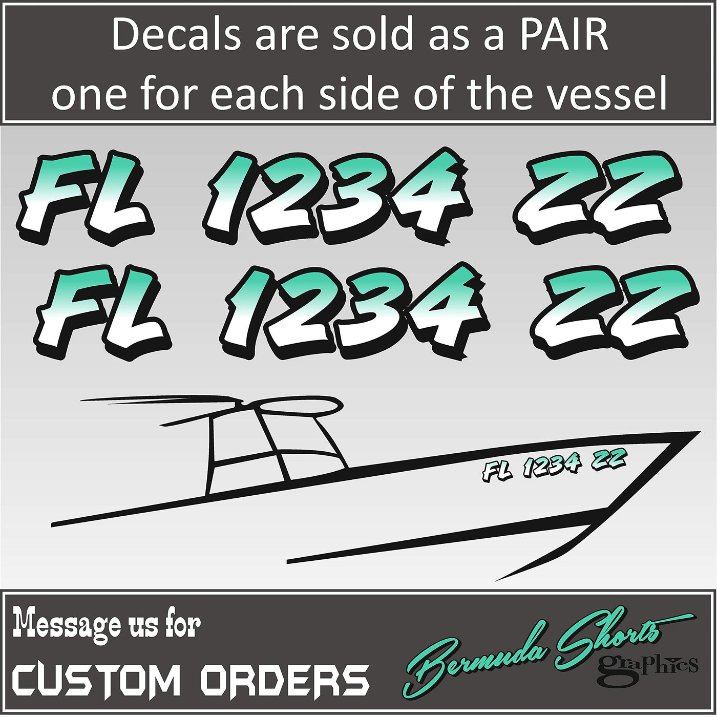 Boat Registration Numbers X2 Gr / 2 Pack/Custom State Registration Stickers/Vinyl Boat Decal Graphics Pair