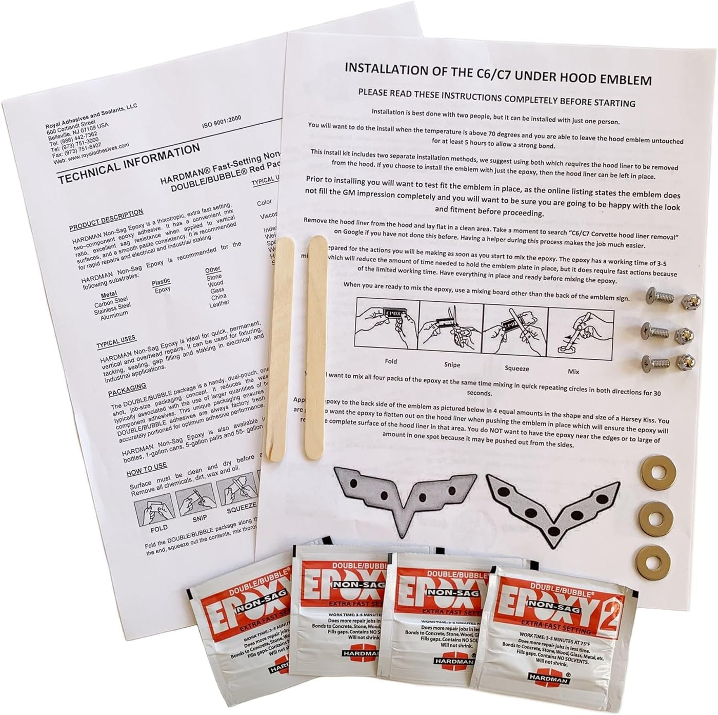 The C7 Corvette Underhood Emblem is a premium accessory designed to elevate the aesthetic appeal of the engine bay in the seventh-generation Chevrolet Corvette. This emblem adds a distinctive touch of personalization, highlighting the iconic design and performance heritage of the Corvette. Constructed with high-quality materials, the C7 Corvette Underhood Emblem is engineered to withstand the intense heat and conditions found under the hood. Its durable and resilient build ensures long-lasting performance, maintaining its pristine appearance over time. The emblem features the renowned Corvette crossed flags logo, meticulously crafted to capture the essence of the Corvette's legacy. The emblem's design blends seamlessly with the aggressive and sleek styling of the C7 Corvette. Available in different finishes including chrome and carbon flash, it allows owners to customize the look to match their vehicle's exterior or personal taste. The attention to detail in the emblem's design enhances the visual impact of the engine bay, making it a focal point of admiration. Installation of the C7 Corvette Underhood Emblem is straightforward and user-friendly, requiring no special tools or modifications. It is designed for a secure fit, ensuring stability even under high-speed driving and engine vibrations. This emblem not only enhances the underhood area's appearance but also serves as a testament to the Corvette's tradition of excellence in performance and design. For Corvette enthusiasts who seek to showcase their vehicle's unique character and pride, the C7 Corvette Underhood Emblem is an ideal accessory. It offers a combination of style, durability, and easy installation, making it a perfect addition to celebrate the Corvette's enduring spirit and engineering prowess. This item is for the Cross Flag Emblem to fit in the indent of the stock under hood blanket. It does NOT include a replacement under hood blanket. This is a photo of the C7 Cross-Flag emblem taken with a high end digital camera and with PhotoSTEEL technology it is transformed onto thin flat steel and sized to fit in the factory under hood crossed flag impression. When you pop your hood on your C7 Corvette your LT1/LT4 engine will draw attention alone but this emblem on the inside of the hood completes the WOW factor! GM was just as impressed as we were and granted it an official GM licensed product. There is one small hole at each wing tip and at the bottom, these are needed during the production of the emblem and is also used with the hardware mounting kit. Please review the listing picture in full zoom as the hood emblem does not completely fill the factory under hood crossed flag impression but it does fit inside of it and lays flat. Kit includes the flat metal emblem along with adhesive epoxy and hardware. Instructions are included for the simple installation.