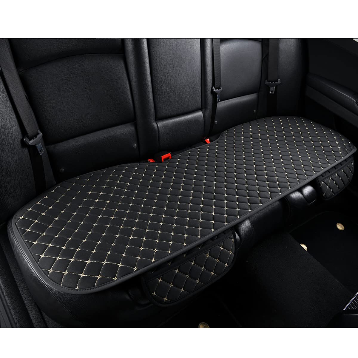 Car Seat Covers Auto Cushion Vehicle Long Rear Seat Chair Cover Protective Mat Pad For Baby, Suv, Skin-Friendly Golden Embroidery Thread (Black-Rear)