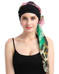 Q: What materials are used in the Chemo Turbans Print Scarves?A: The Chemo Turbans are made from high-quality Bamboo Viscose Fabric, which is natural, lightweight, and stretchy. This fabric is soft like silk and smooth like milk, making it comfortable for sensitive scalps.