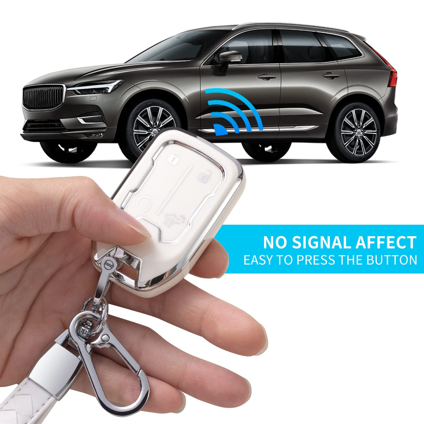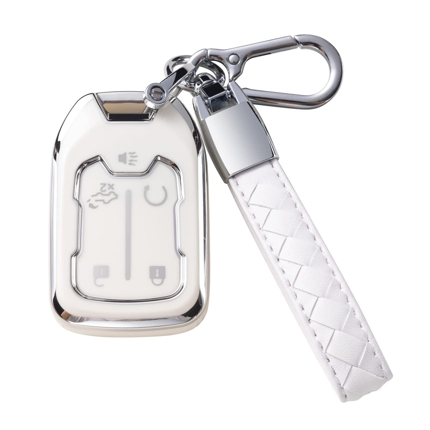 Chezenhui For Gmc Key Fob Cover With Leather Lanyard, Car Key Case Shell Protection For 2019-2022 Gmc Sierra 1500 2500Hd 3500Hd Terrain Acadia Smart Remote Control Protector, White