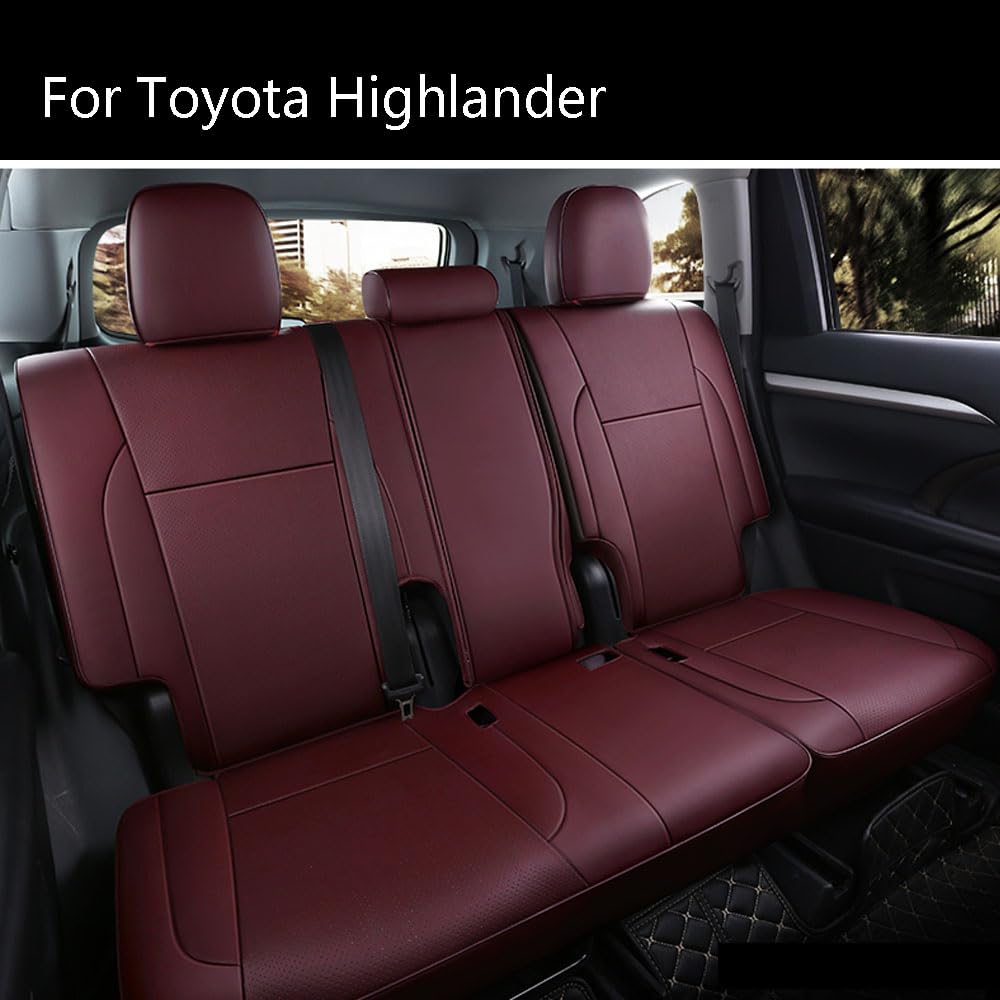 Cochefamilia Custom Fit Highlander Car Seat Covers For Select Toyota Highlander 2014 2015 2016 2017 2018 2019 - Three-Row,Second Row 40/60 Split,Leather (Burgundy)