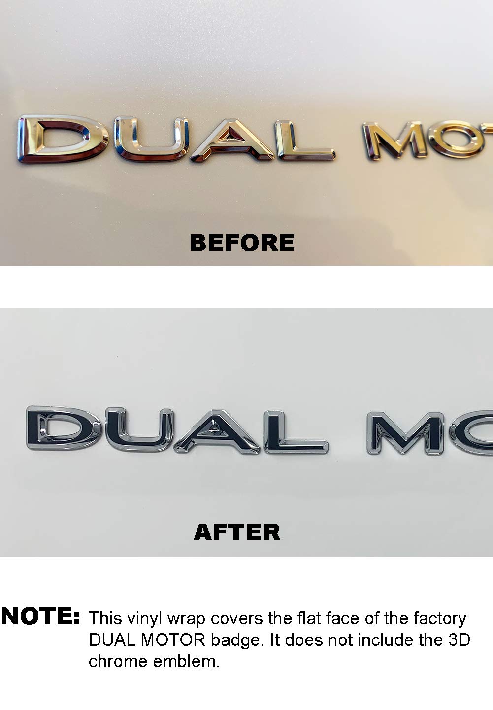Product Features: Includes 2 Sets Of Decals: An Extra Set Is Included Just In Case Precision Design: Perfect Fit On The Factory Oem Dual Motor Badge For The Tesla Model 3, S, X & Y (Cannot Guarantee Fit On Aftermarket Badges) Commercial Grade Equipment: Every Cut Is Consistent, Accurate, Has Smooth Lines, And Sharp Corners Previum Vehicle Graphics Vinyl: Weather-Rated; Uv Resistant; 8-Year Warranty Easy Installation: Clear Transfer Tape Is Pre-Applied For Easy, Quick, And Accurate Installation (About 10 Seconds Per Letter); Can Be Removed At Any Time 90-Day Warranty & Free Replacements: We Want Your Tesla To Look Perfect, So We Offer Free Replacements For 90-Days For Any Reason, No Questions Asked
