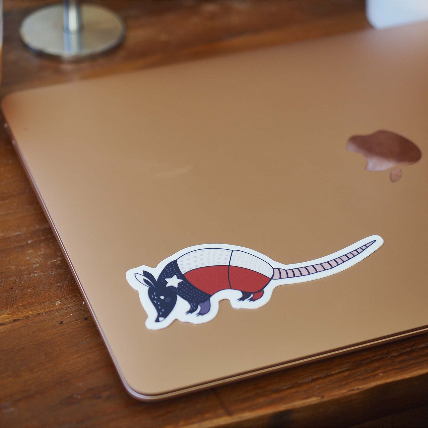 Q: What material is the Cute Armadillo Texas Sticker made from?A: The Cute Armadillo Texas Sticker is made from high-quality vinyl, ensuring durability and longevity for both indoor and outdoor use.