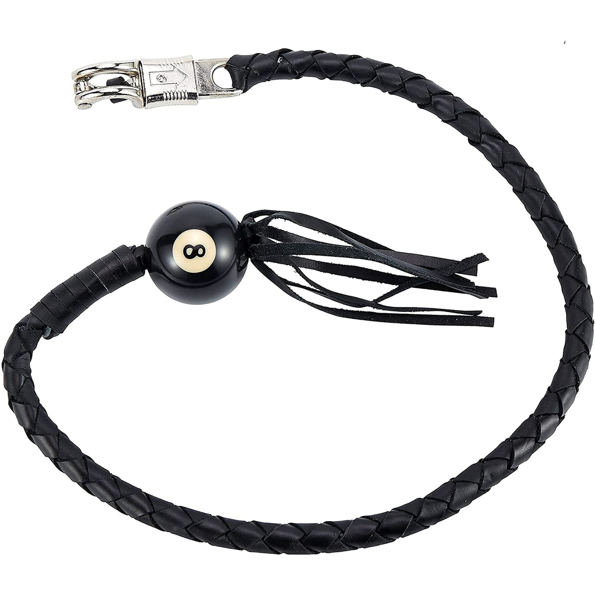 Dream Apparel 42' Leather Motorcycle Get Back Whip For Handlebar Fringed Biker Whip With Pool Ball, Black