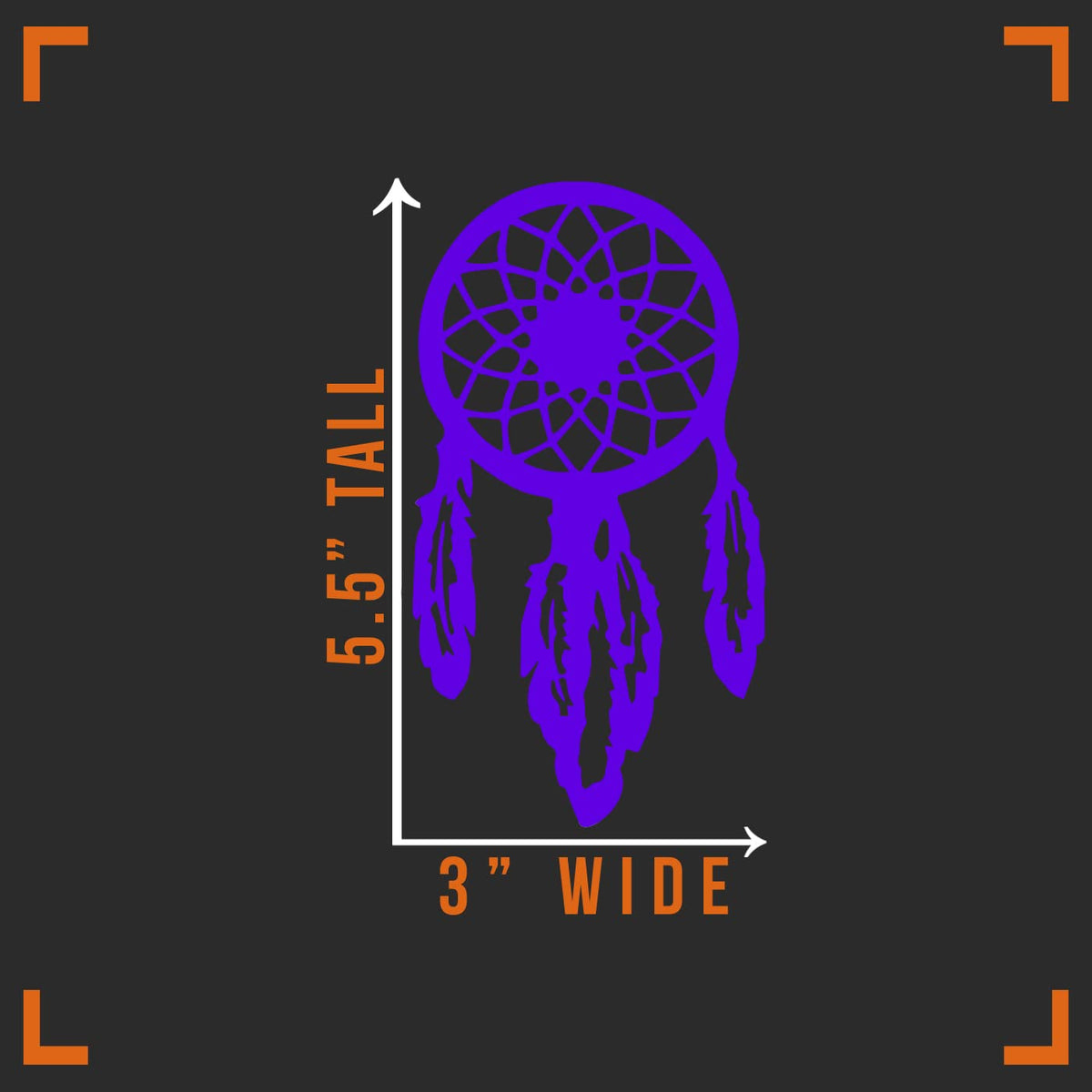 Q: What is the size of the Dreamcatcher Decal Vinyl Sticker?A: The Dreamcatcher Decal measures 3 inches wide by 5.5 inches tall, making it a perfect fit for various surfaces such as cars, trucks, walls, and laptops.