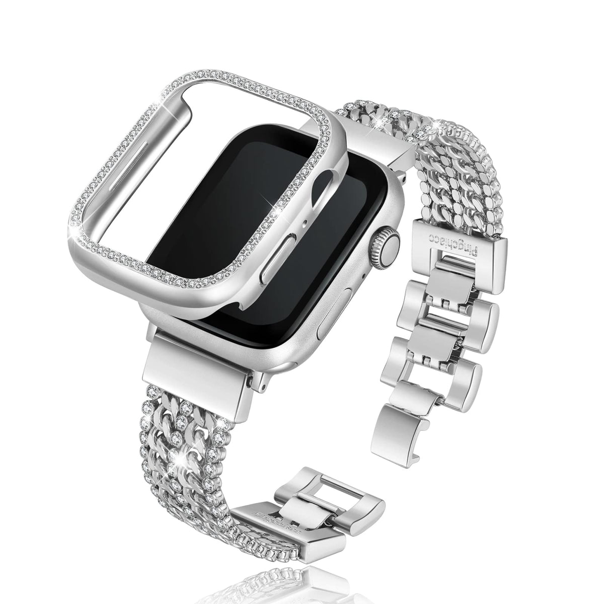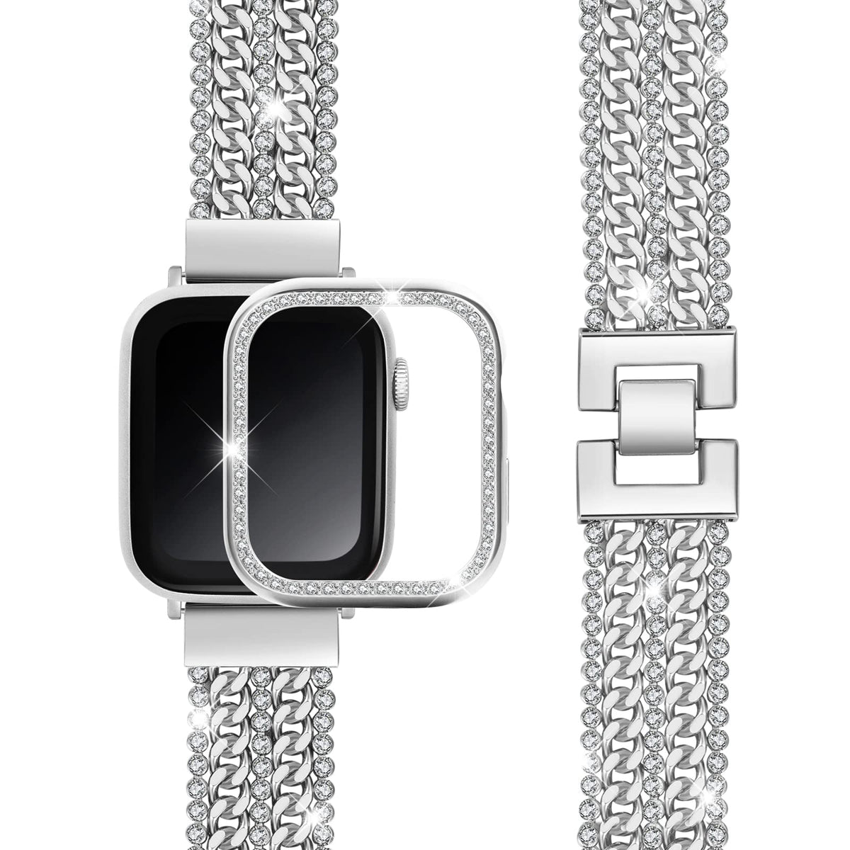 Dztxyp Crystals And Cowboy Metal Chains Compatible For Apple Watch Bracelet Bands With Bling Protective Case 38Mm 40Mm 41Mm 42Mm 44Mm 45Mm Iwatch Series 8 7 6 5 4 3 2 1 For Women Dressy (40Mm, Silver)