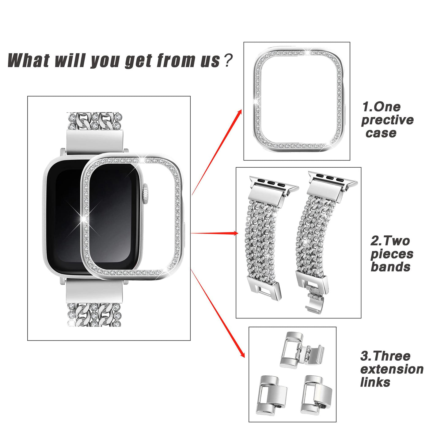 Q: Does the purchase include a protective case?A: Yes, the purchase includes a bling crystal bumper protective case along with the smart watch band. This ensures both style and protection for your Apple Watch.