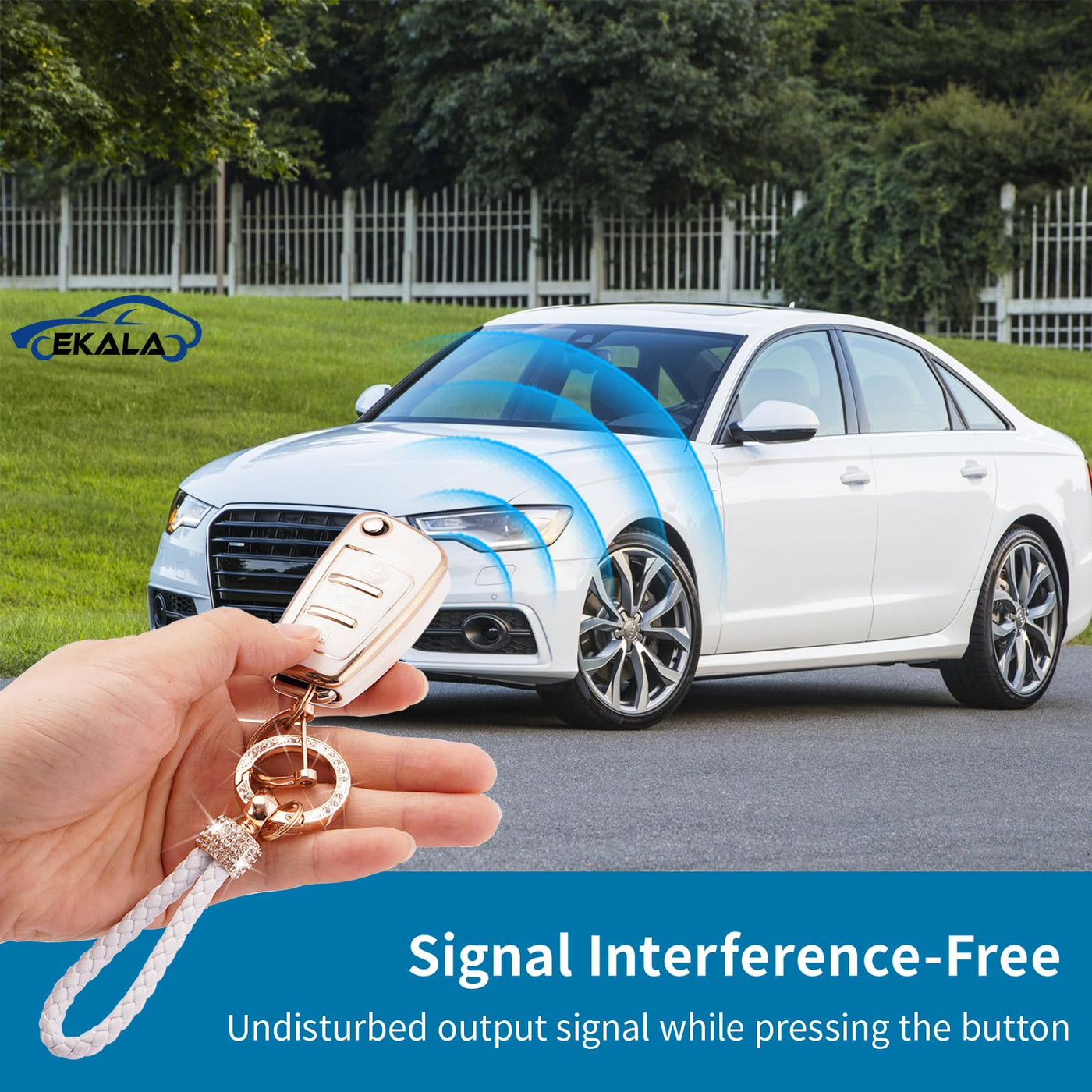 Ekala Car Key Full Cover For Audi With Keychain Lanyard, 3 Buttons Soft Tpu Key Protection Case Compatible With Audi A1 A3 A4 A6 A8 Quattro Q2 Q3 Q7 S3 S6 Rs3 Rs6 R8 Tt Tts Car Key Shell Cover(Ad-3)