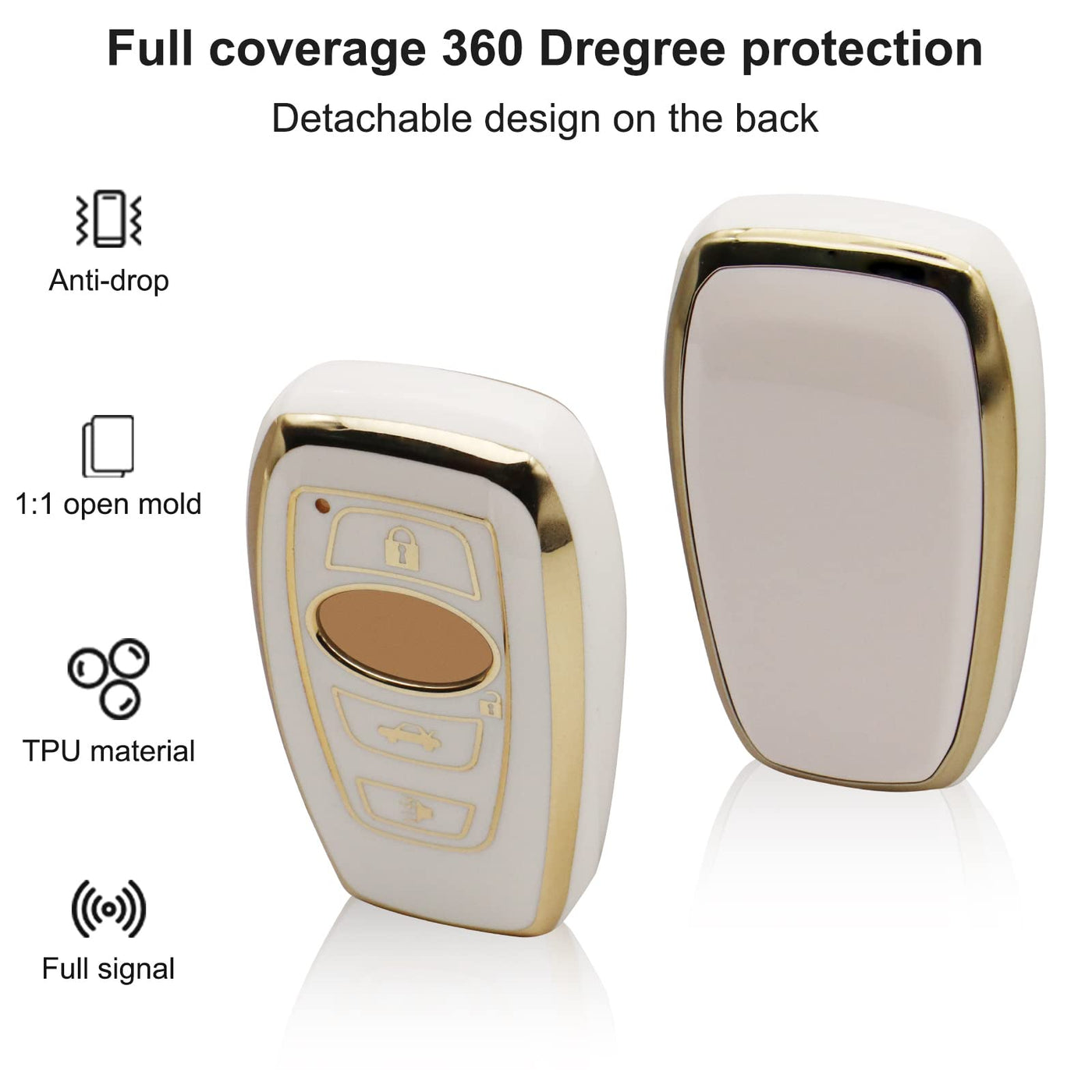 Elegananccy For Subaru Key Fob Cover, Soft Full Protection Key Case Shell With Keychain Compatible With Ascent Brz Crosstrek Forester Impreza Legacy Outback Wrx Sti Smart Key (White)