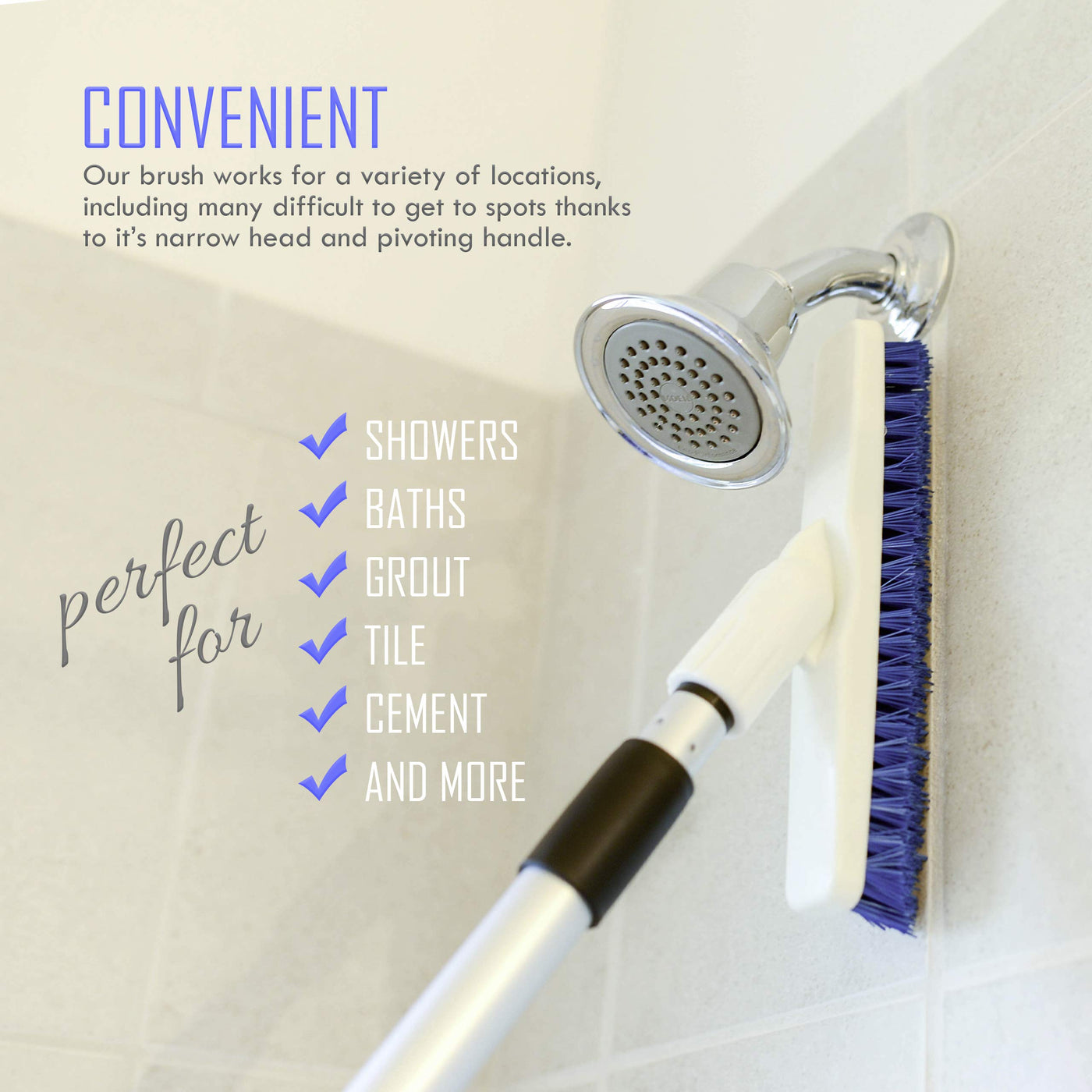 Elitra Home Grout Cleaner Brush With Telescopic Handle & Tough Bristles For Narrow & Wide Kitchen Shower Tub Tile Surfaces By Elitra Home (Swivel Grout Scrubber)