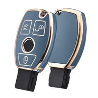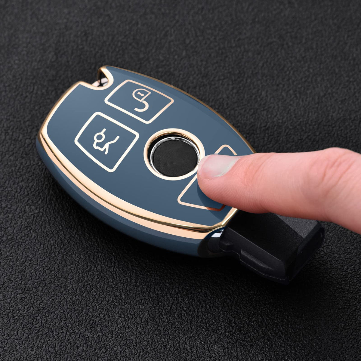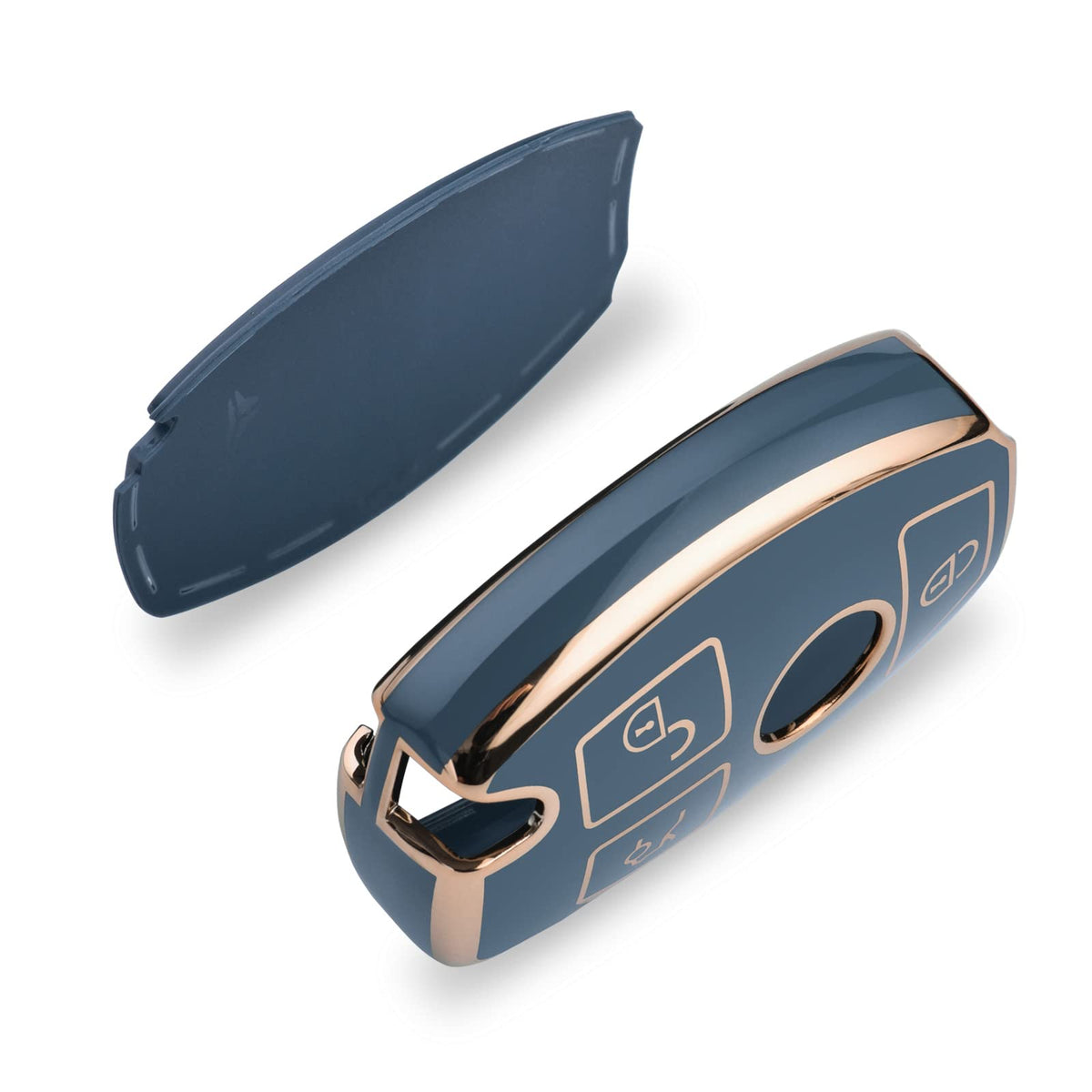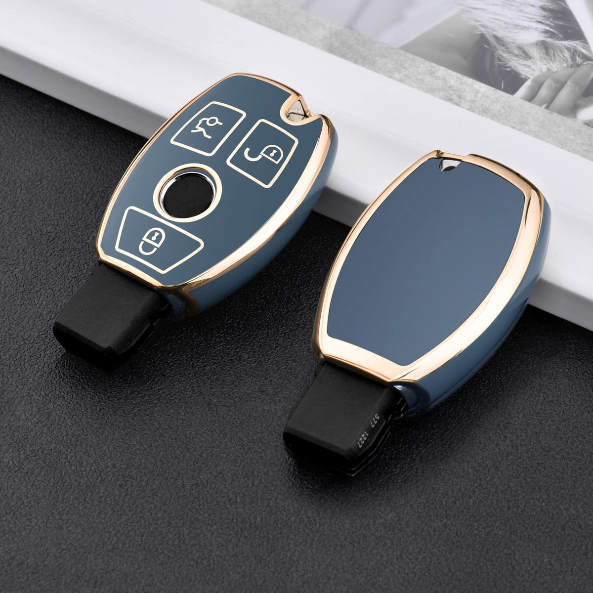 Elohei For Mercedes Benz Key Fob Cover, Premium Soft Tpu Key Case Cover Compatible With Mercedes Benz C E S M Cls Clk G Class Keyless Smart Key Fob (Gold Edge Blue)