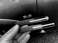 2-Pack. Made of Aircraft Aluminum, Embossed. Flexible. Thickness: 1mm.. Hand polished and Black Glossy/Matte finish. Comes with clear plastic shrink-wrap protecting the surface. (The protective plastic shrink-wrap needs to be removed after installation). UV Resistant. Durable enough to last under all weather conditions. Emblem Size : 6'x1' Comes with 3M adhesive back for stick on.
