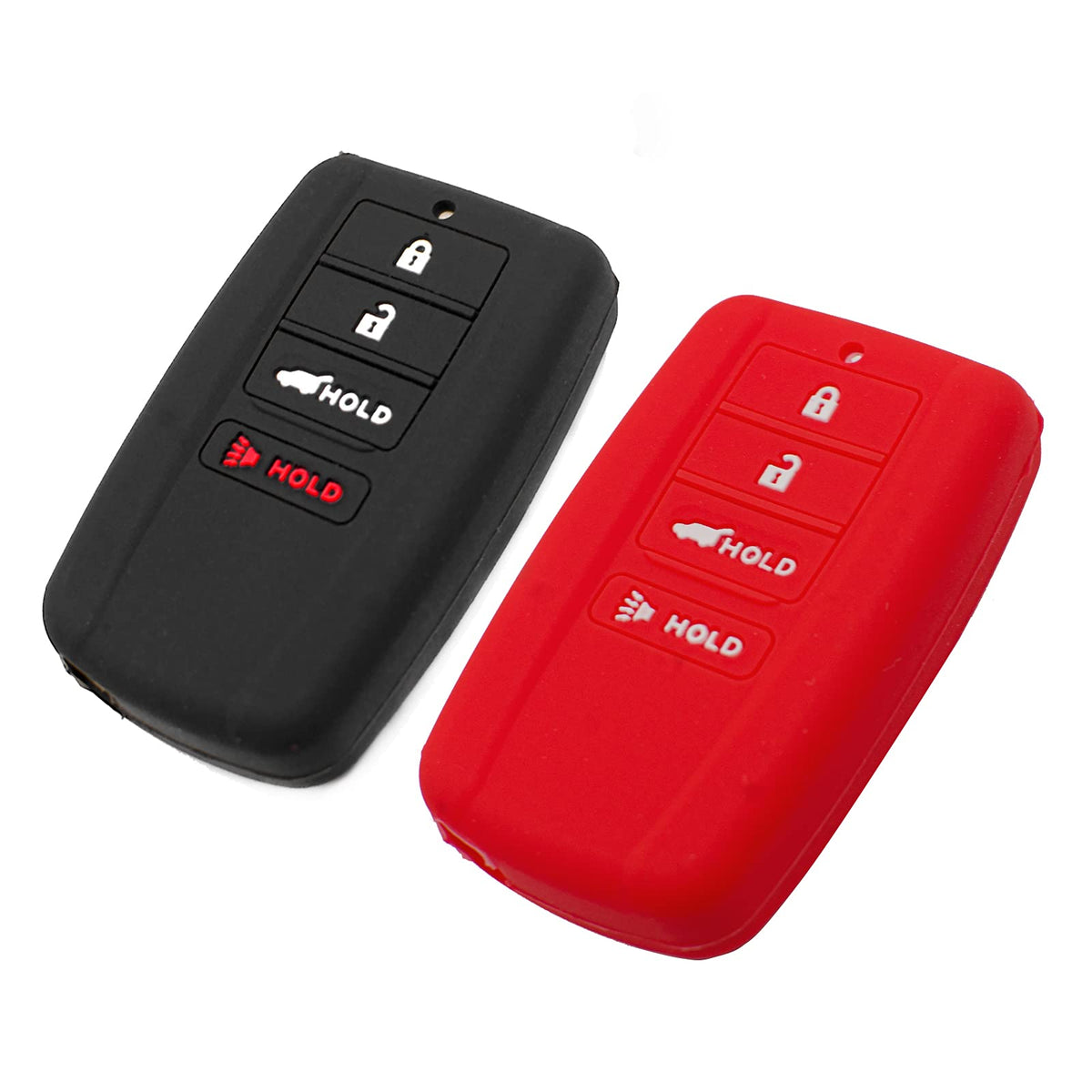 Performance: Please visually compare your existing remote or key with 2nd image to ensure proper fitment. Easy to install, simply slide the car key protective holder over your existing key. No tool is required. Instantly improve the appearance of your remote control fob key. Prevent scratches, personalize & beautify your key. Precisely designed key fob cover made with premium quality silicone. Unqiue colors help you find your fob when you have laid it somewhere. Please note: there may be a slight color difference under different light and monitor. Compatible with: Fit for Acura ILX MDX RDX RLX TLX NSX Smart 4 Buttons Package Included: 2 x Silicone Key Cover, Black Color