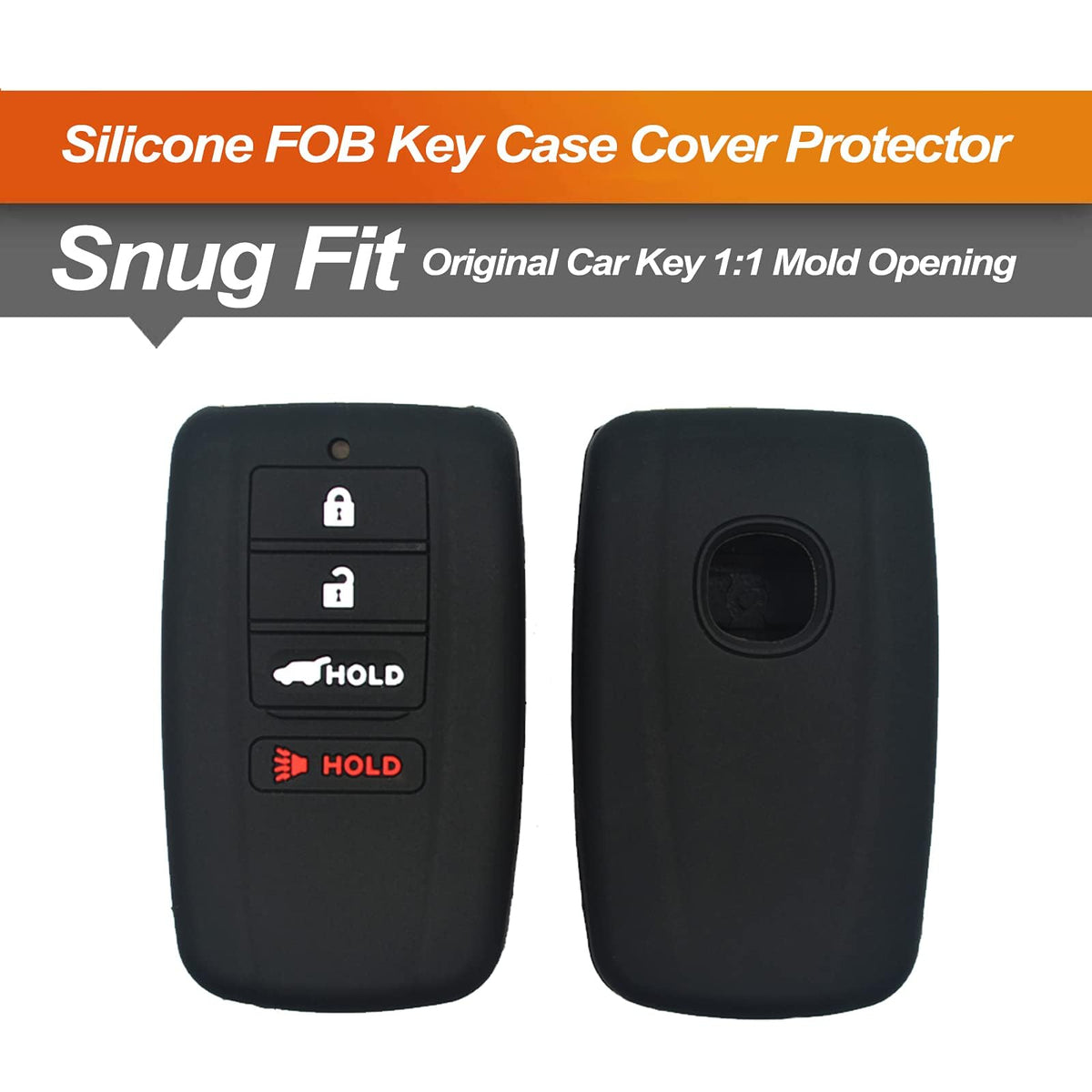 Eyanbis Silicone Key Fob Cover Fit For Acura Ilx Mdx Rdx Rlx Tlx Nsx Smart 4 Buttons | Car Accessories | Remote Key Protection Case - Black & Black