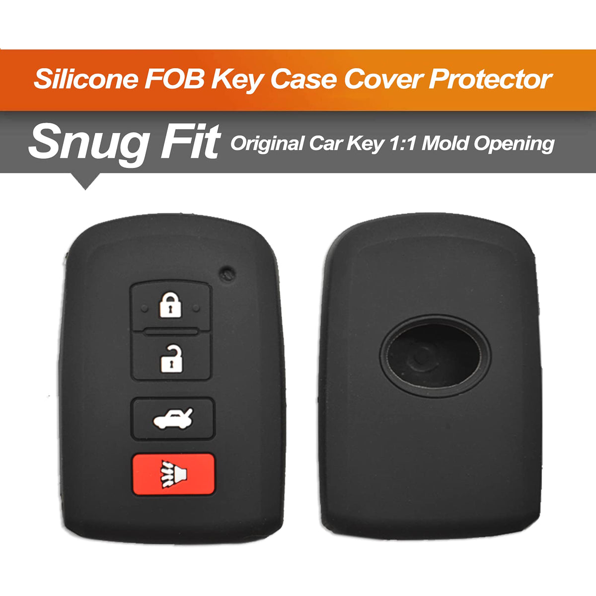 Performance: Please visually compare your existing remote or key with 2nd image to ensure proper fitment. Easy to install, simply slide the car key protective holder over your existing key. No tool is required. Instantly improve the appearance of your remote control fob key. Prevent scratches, personalize & beautify your key. Precisely designed key fob cover made with premium quality silicone. Unqiue colors help you find your fob when you have laid it somewhere. Compatible with: Fit for Toyota Avalon Camry Corolla Highlander RAV4 Sequoia Smart 4 Buttons Key Fob Package Included: 2 x Silicone Key Cover, Black Color