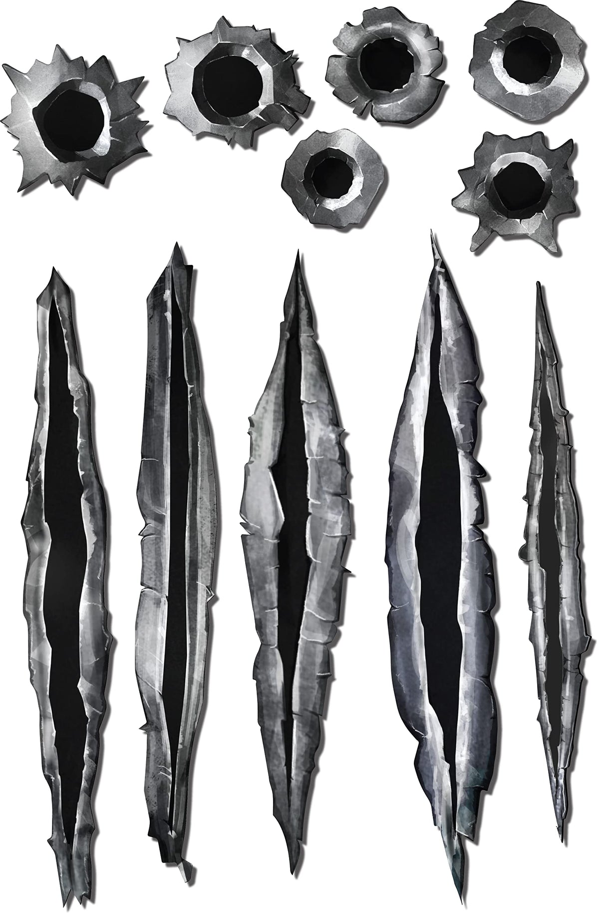 Fake Realistic Bullet Hole And Claw Mark 3M Vinyl Sticker Decal 11 Pack Peel And Stick