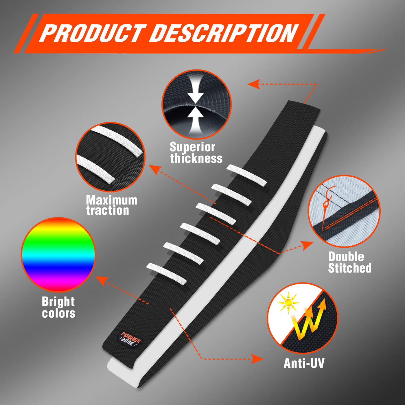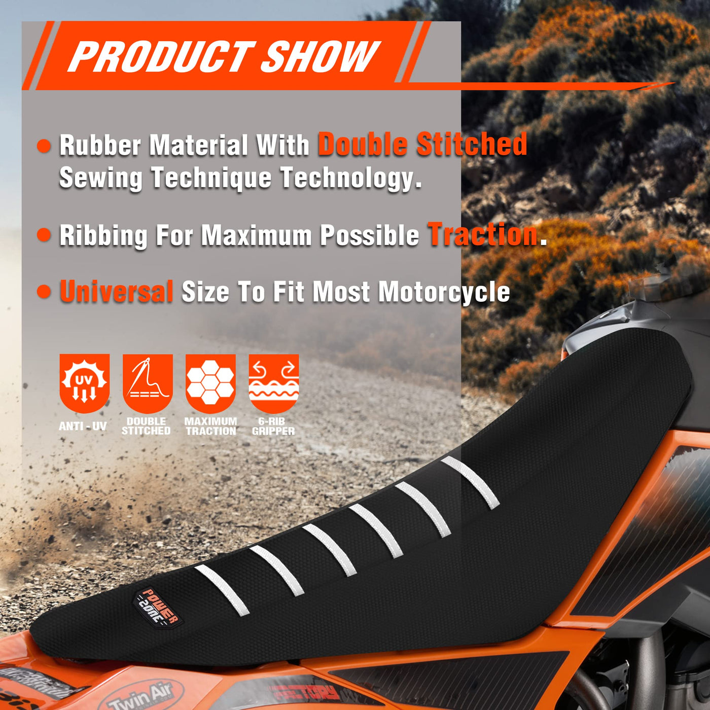 Q: How durable is the material used in this dirt bike seat cover?A: The seat cover features soft gripper material that is thick, durable, and provides a firm grip, ensuring that you stay securely in place while riding.