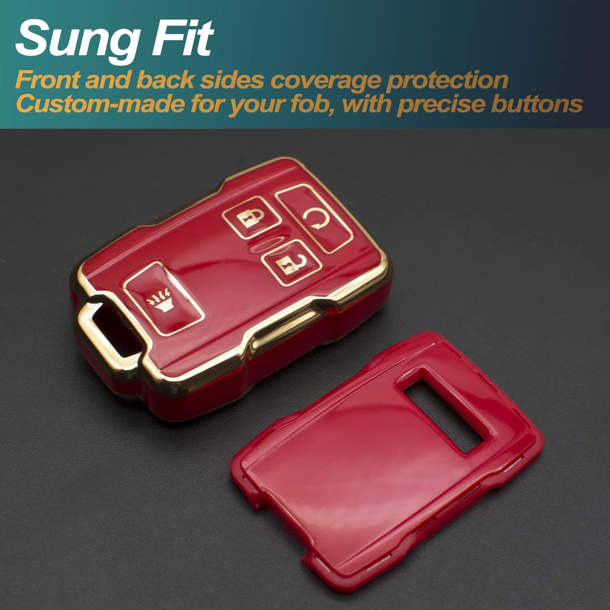 Feyoun Key Fob Cover Compatible With Chevy Chevrolet Colorado Silverado Silverado Suburban Tahoe Gmc Canyon Sierra 1500 2500 3500 Hd Tpu Remote Keyless Key Fob Case Protection Shell Accessories, Red