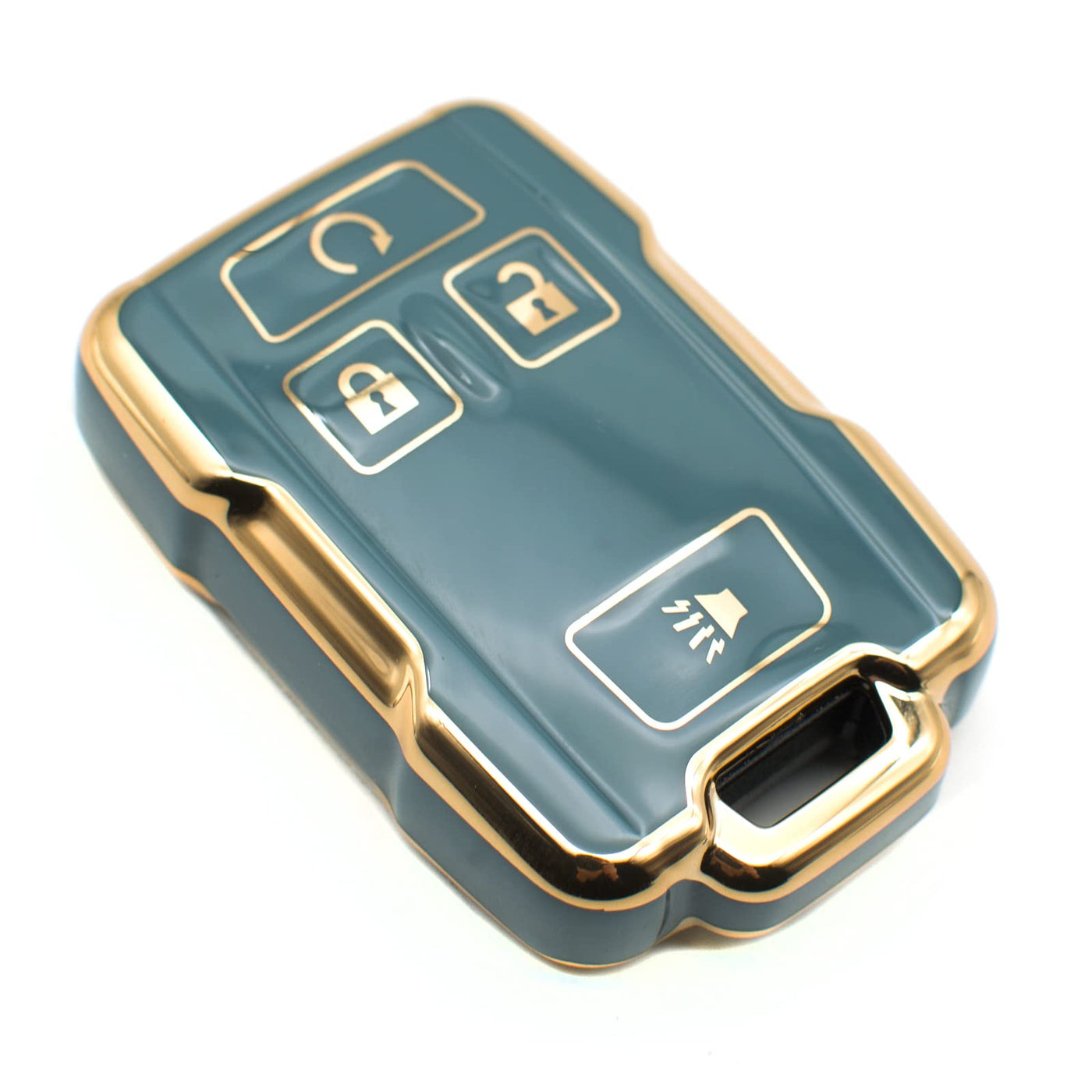 Feyoun Key Fob Cover Compatible With Chevy Chevrolet Colorado Silverado Silverado Suburban Tahoe Gmc Canyon Sierra 1500 2500 Tpu Remote Keyless Key Fob Case Protection Shell Accessories, Blue Gray