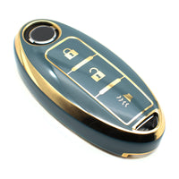 Feyoun Key Fob Cover Compatible With Nissan 370Z Armada Kicks Murano Pathfinder Rogue Titan Versa Note Infiniti Smart 3 Buttons Tpu Remote Keyless Key Fob Case Protection Shell Accessories, Blue Gray