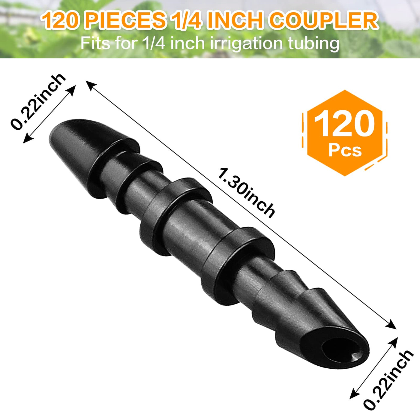 Gardrip Drip Irrigation Coupling Fittings:120 Pieces Barbed Coupler Irrigation Parts With Sharp End Fits For 1/4 Inch Irrigation Tubing Drip Line Connectors For Garden Lawn Irrigation System