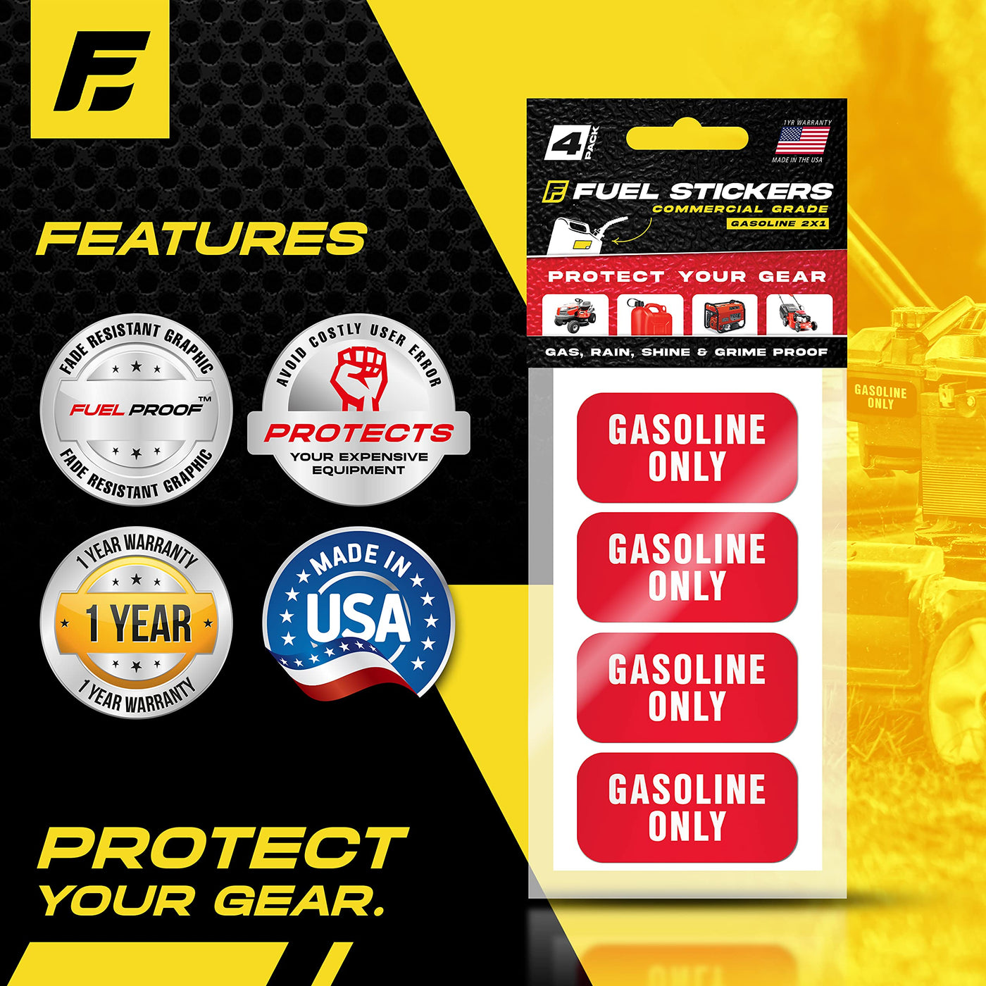 Gasoline Only Sticker, Gas Labels For Fuel Cans, Mowers, Boats, Outdoor Power Equipment - Weather Proof, Extreme Stick, Commercial Grade Labels By Fuel Stickers - Usa Made (2X1 Inch), 40 Labels