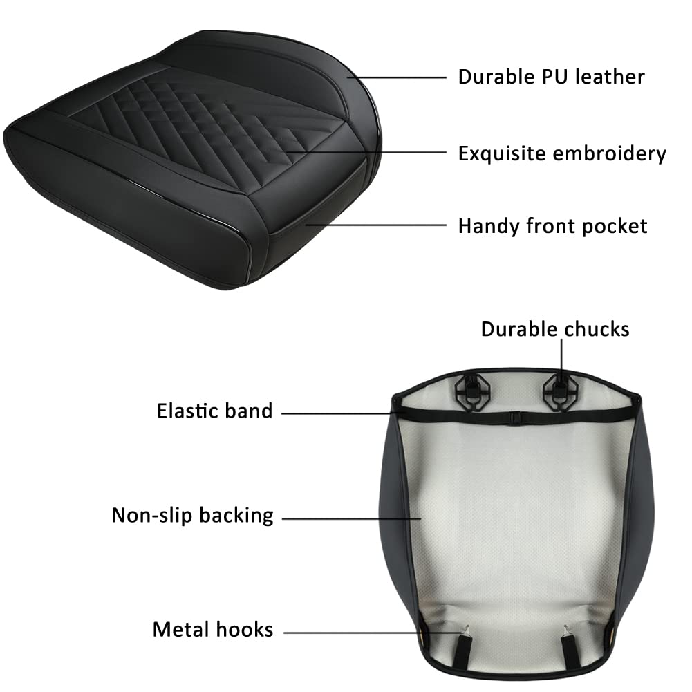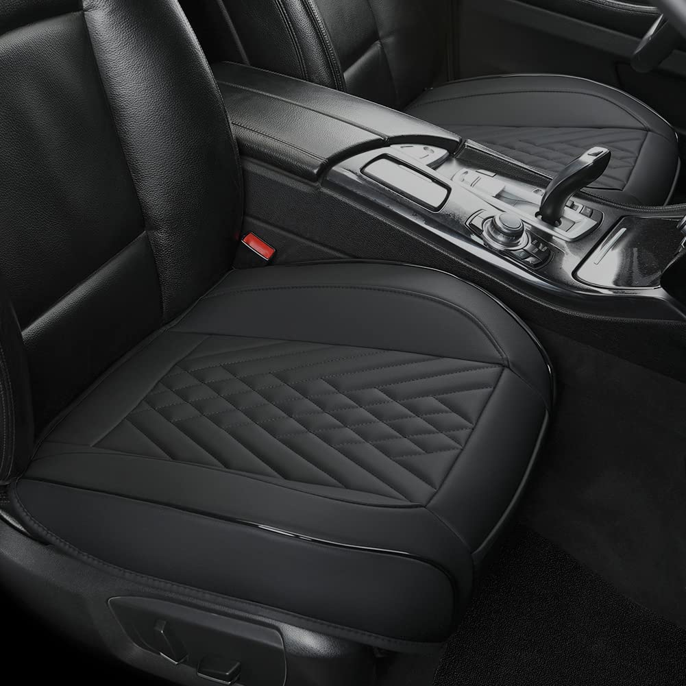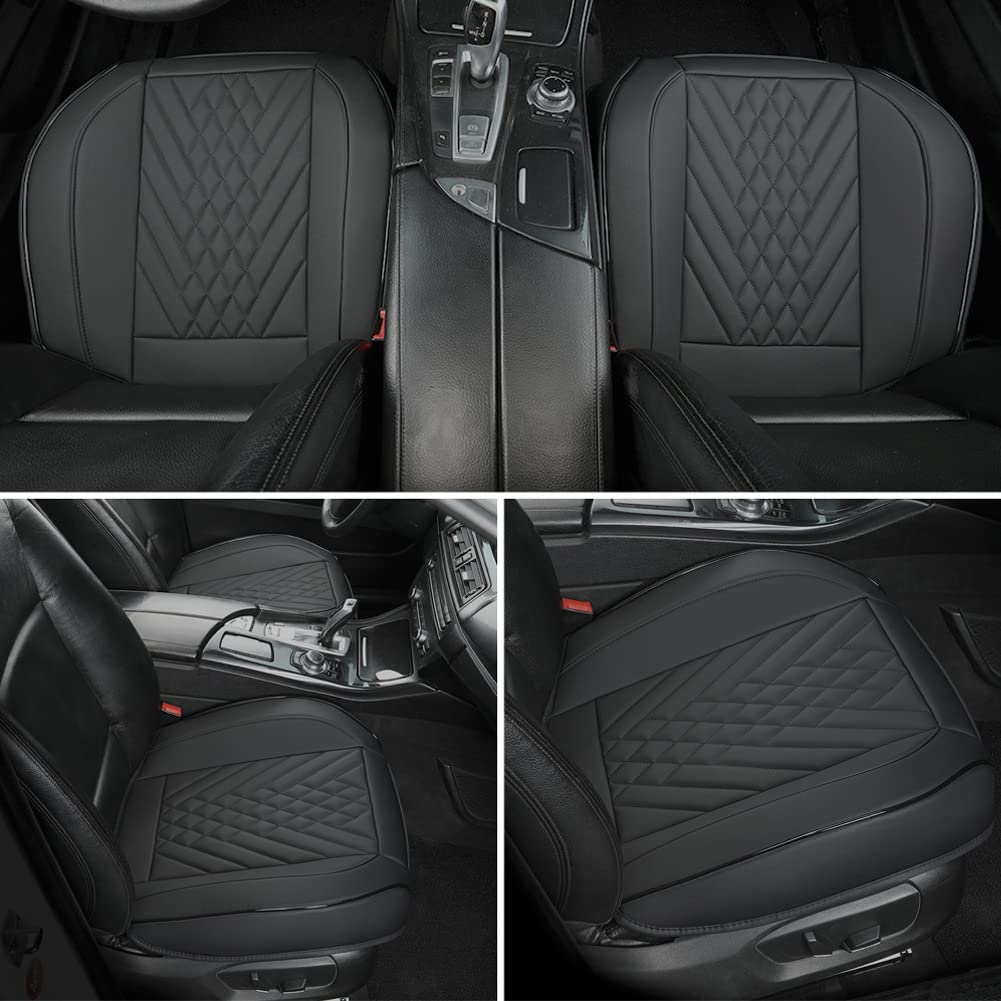 Giant Panda 2Pcs Front Car Seat Covers Bottom Seat Covers, Pu Leather Driver Car Seat Protectors Fits 95% Of Vehicles, Wrapping Around The Bottom (Black)