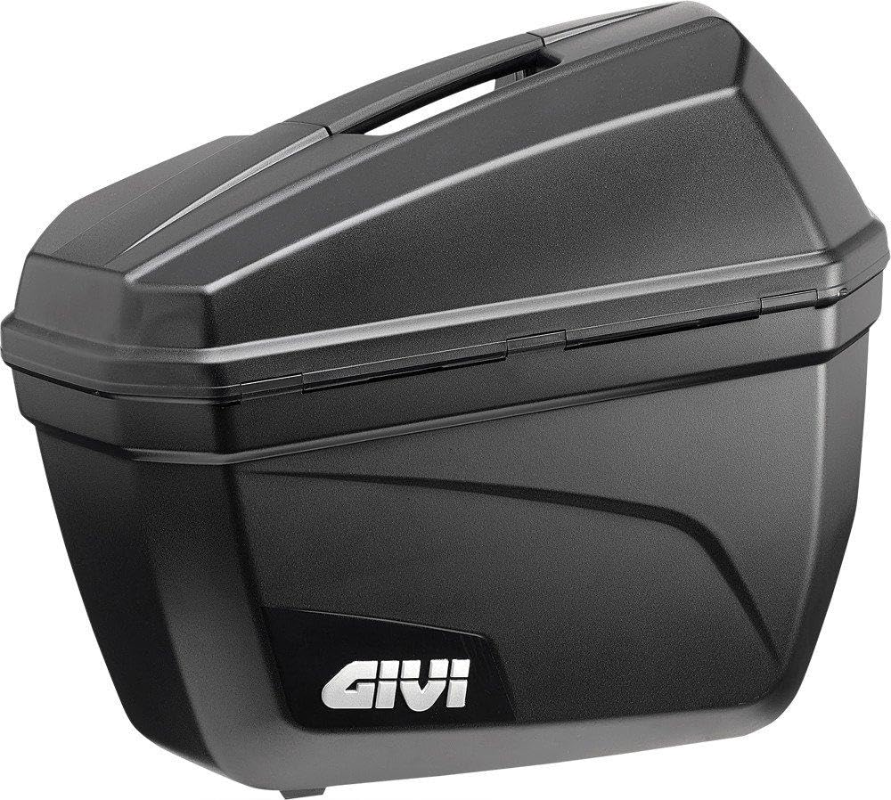 Q: What materials are used in the construction of the Givi E22N side cases?A: The Givi E22N side cases are made from durable plastic construction, specifically Ethylene Vinyl Acetate (EVA), ensuring they are lightweight yet robust for motorcycle use.
