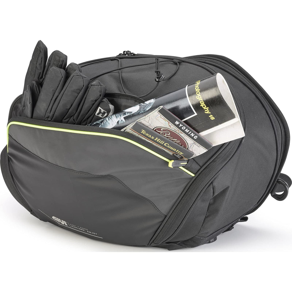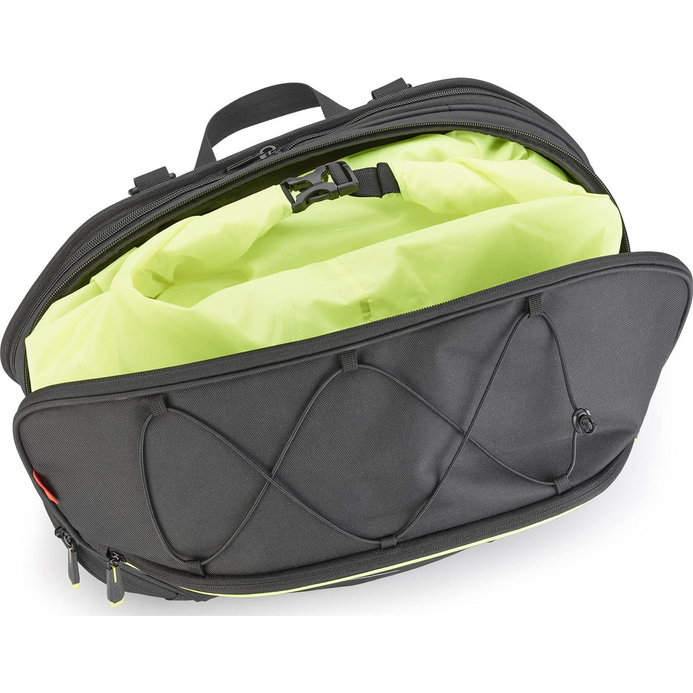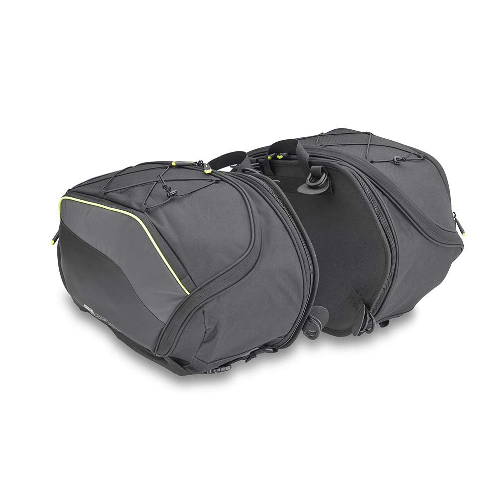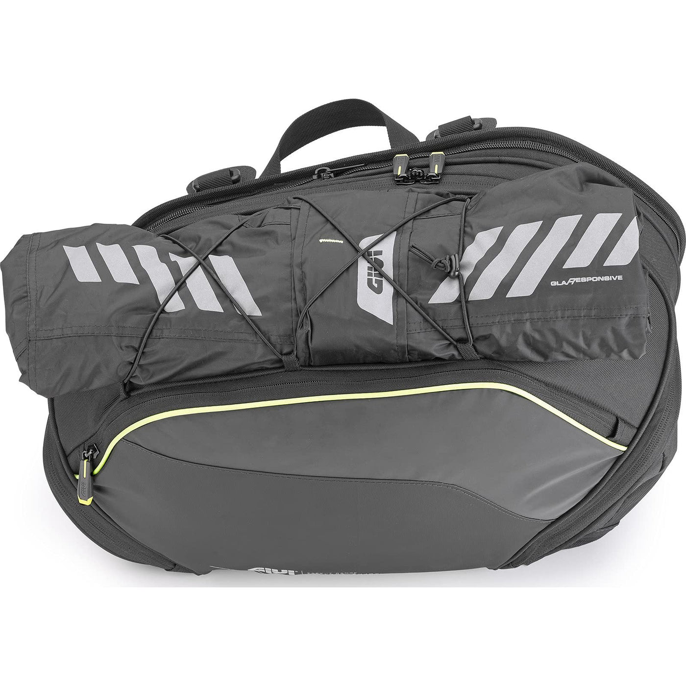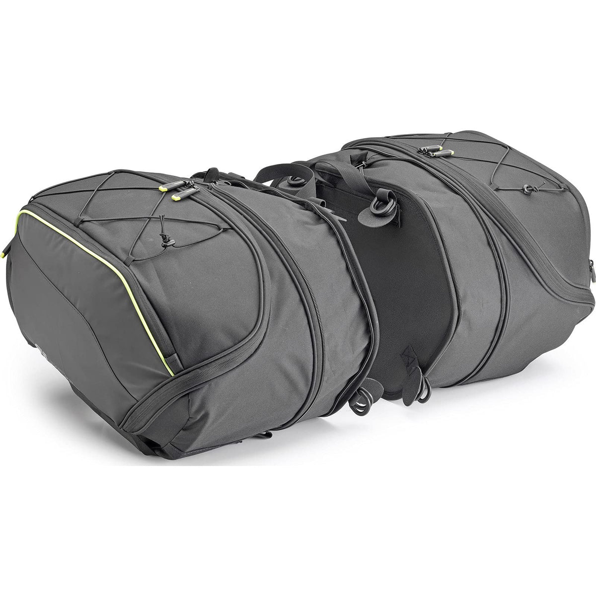 Q: What materials are used in the GIVI Soft Side Bags Easy Bag 2030 LT?A: The GIVI Soft Side Bags Easy Bag 2030 LT are constructed from 600D/PU W/R polyester with PU inserts, ensuring durability and weather resistance.