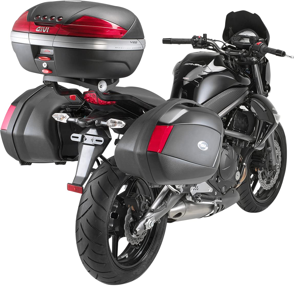 GIVI SRA5108B Specific rear rack in aluminium black for MONOKEY top case maximum load allowed 6kg / it does not allow the assembly of the stop light kit or the remote control device on the case. *Only fits standard OEM rack.