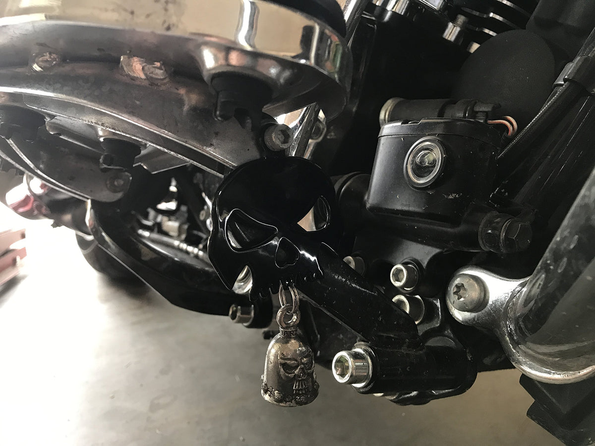 Q: What motorcycles is the Gloss Black Skull Bell Hanger compatible with?A: The Gloss Black Skull Bell Hanger is designed to fit all motorcycle models, including popular models like the Road King and Street Glide from Harley Davidson.