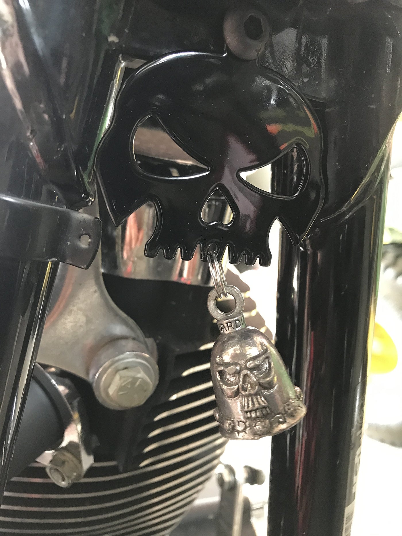 Gloss Black Skull Bell Hanger/Mount for Motorcycle Bolt & Ring Included fits all bikes Road King Street Glide Harley Davidson (NO BELL)