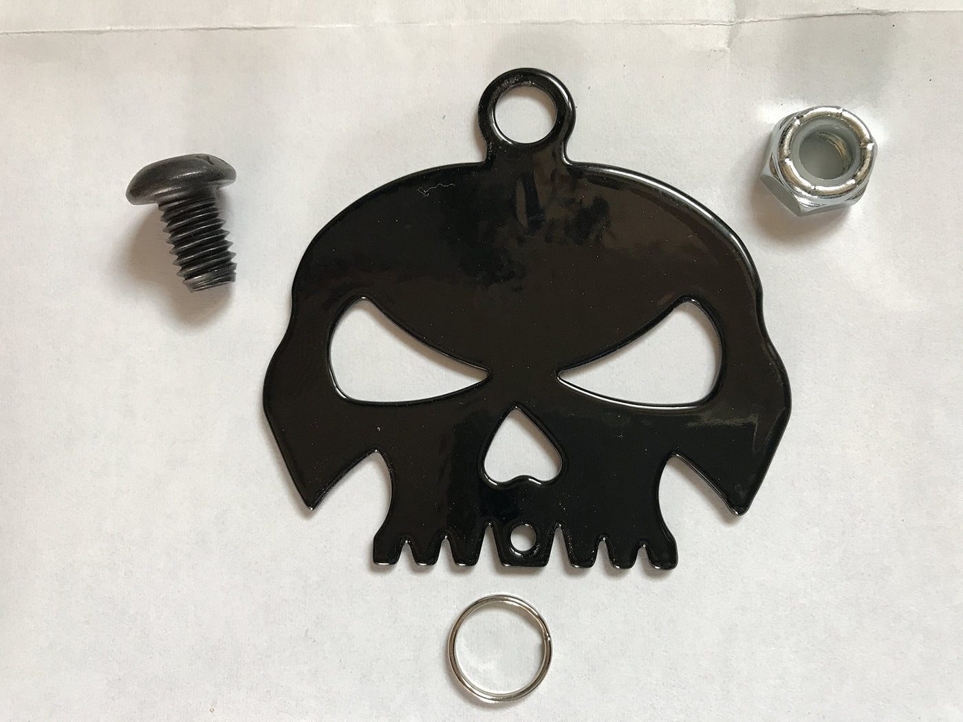 Make a statement and mount your Bell to this Kustom Skull Hanger Skull is made of stainless steel and comes with 1/2 split ring and 5/16' black button head bolt and nylock nut This skull is the absolute best and coolest way to mount your Bell to your motorcycle Skull Measures 2 1/8' from the center of the 5/16' mount hole to the center of the ring hole 2-1/5' H x 2-9/16' W total Bell not included
