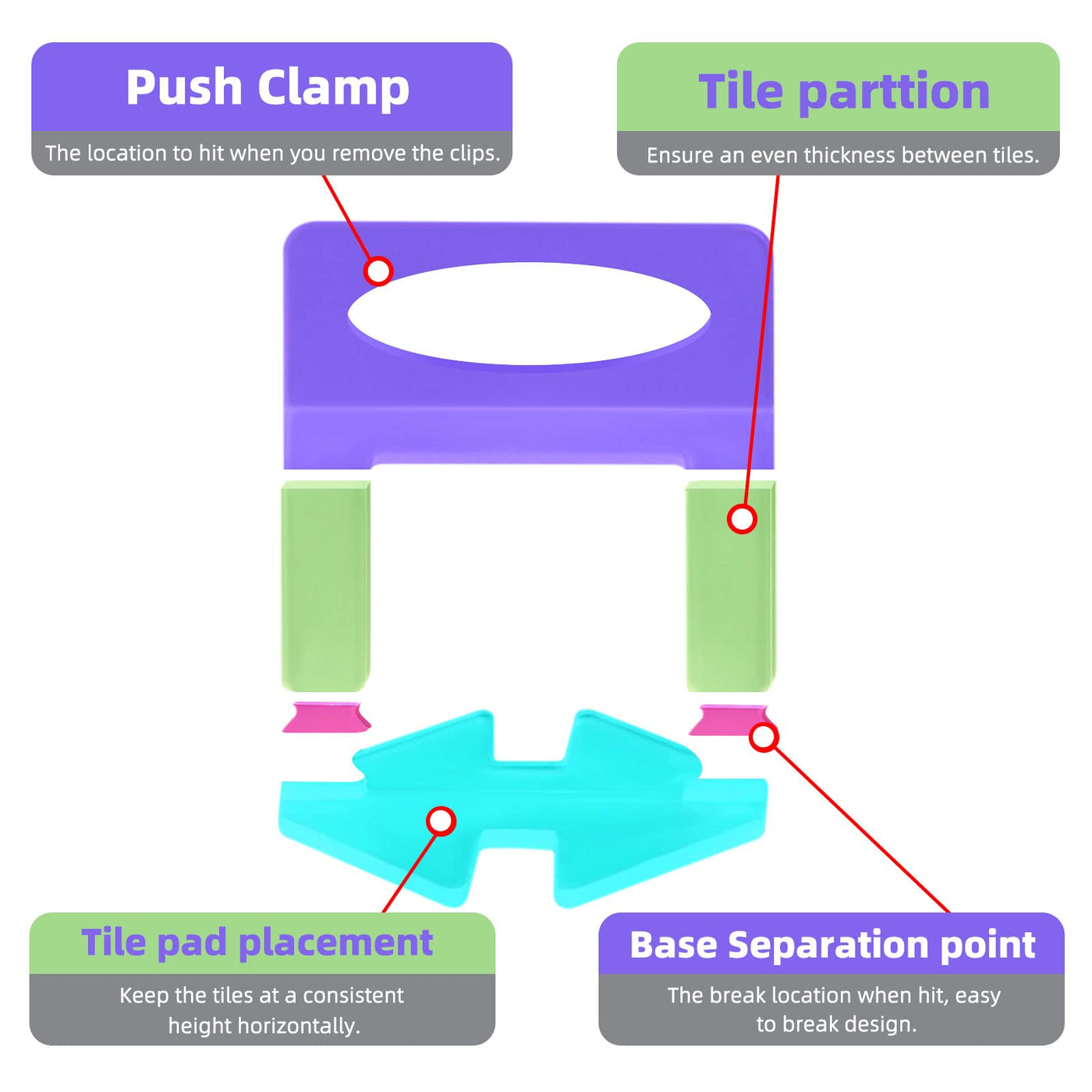 Q: How do I install the tile leveling clips?A: To install the clips, simply place them under the tile, level the tile with the adjacent piece, and tighten the clips until the tiles are flush. After the cement cures, you can easily break off the clips for a smooth finish.