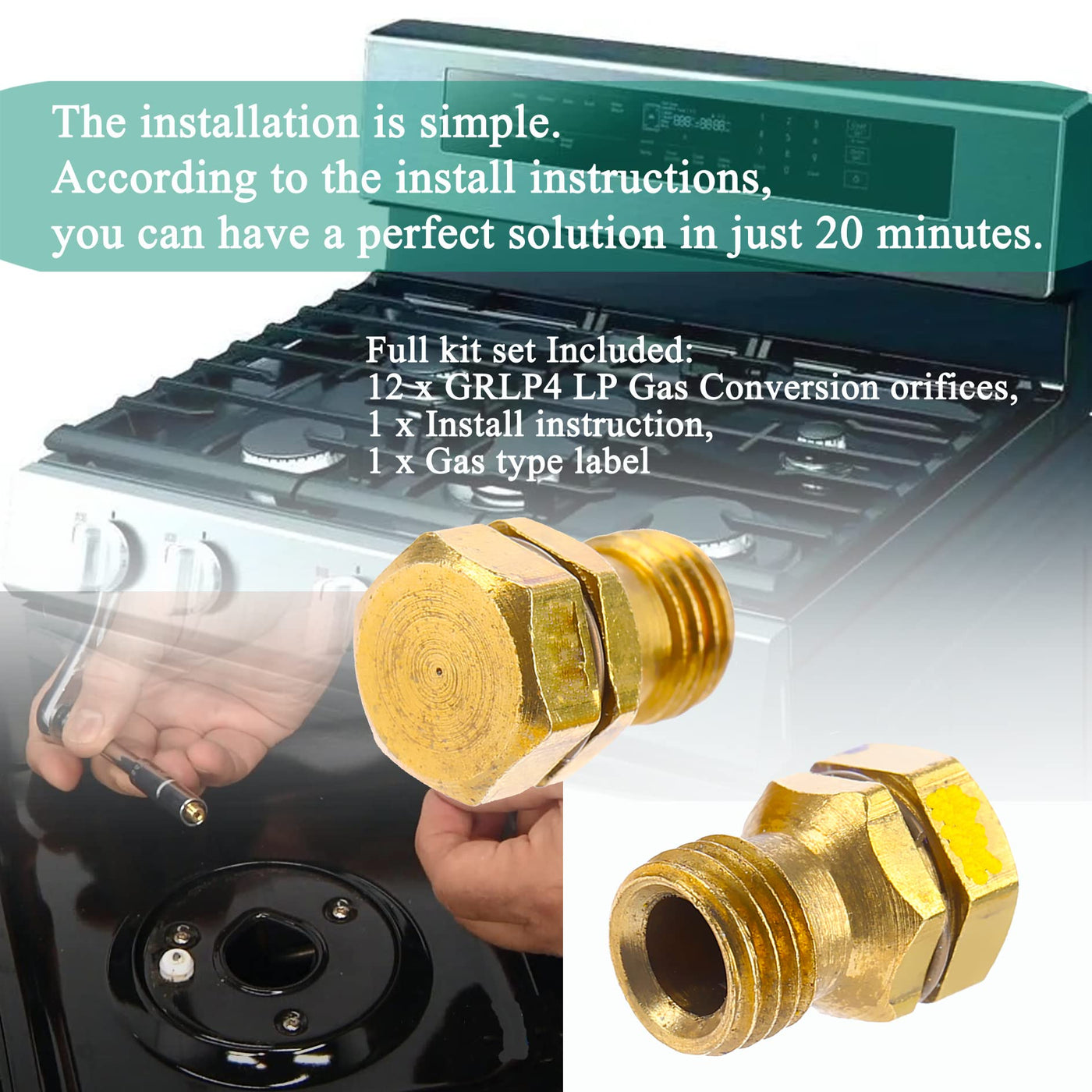 Grlp4 Lp Gas Conversion Kit Replacement Part Compatible With Frigidaire Kenmore Electrolux Range/Cooktop/Stove, Ap5608114 Replaces 318565427, 2319698 Etc. 12 Pcs, Brass, With Instruction
