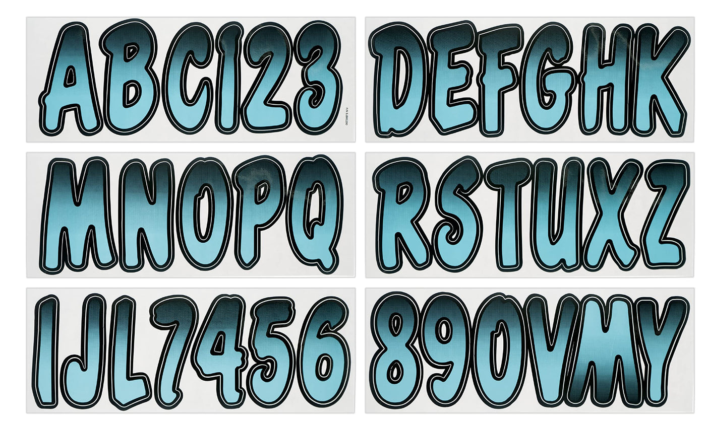 This Series 200 Factory Matched 3-Inch Registration Kit From Hardline Products In Bluejay/Black For Boats And Power Watercraft (Model Bjbkg200) Features A Smooth Cursive Font With Top To Bottom Color Gradations. This Kit Contains Four Sets Of A-Z Letters And Four Sets Of 0-9 Numerals. Easy To Mount -- Just Peel And Apply. These Registration Stickers Are Uv Coated To Protect From Fading, And They'Re Also Fuel And Scratch Resistant. They'Re Made From 100 Percent Lead Free Inks And Vinyl With A Waterproof Superstick Adhesive, And They'Re Tested To Speeds Up To 100 Mph. The 3-Inch Registration Sticker Height Meets Uscg Requirements When Installed Correctly. Hardline Products Is An Industry Leader In After-Market Power Sports Accessories, Offering Matched Registration Letter And Number Kits, Decal Application And Removal Fluid, And More For On- And Off-Road Motorcycles, Boating, Personal Watercraft, All Terrain Vehicles (Atvs), Snowmobiles, And Karting. Made In The Usa.