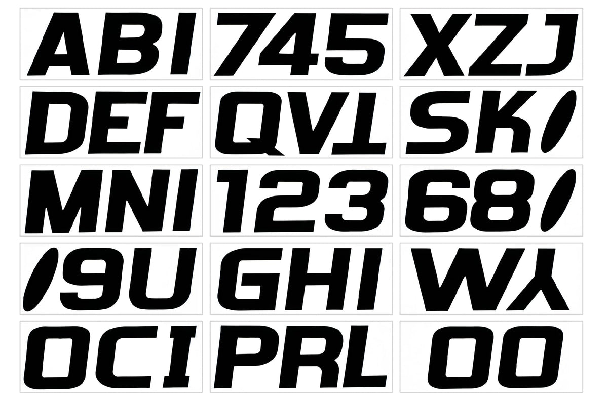 This Series 700 Factory Matched 3-Inch Registration Kit From Hardline Products In Solid Black For Boats And Power Watercraft (Model Blk700Ec) Features A Slanted, Streamlined Block Font With A Solid Body. This Kit Contains Four Sets Of A-Z Letters And Four Sets Of 0-9 Numerals. Easy To Mount Just Peel And Apply. These Registration Stickers Are Uv Coated To Protect From Fading, And They'Re Also Fuel And Scratch Resistant. They'Re Made From 100 Percent Lead Free Inks And Vinyl With A Waterproof Superstick Adhesive, And They'Re Tested To Speeds Up To 100 Mph. The 3-Inch Registration Sticker Height Meets Uscg Requirements When Installed Correctly. Hardline Products Is An Industry Leader In After-Market Power Sports Accessories, Offering Matched Registration Letter And Number Kits, Decal Application And Removal Fluid, And More For On- And Off-Road Motorcycles, Boating, Personal Watercraft, All Terrain Vehicles (Atvs), Snowmobiles, And Karting. Made In The Usa.