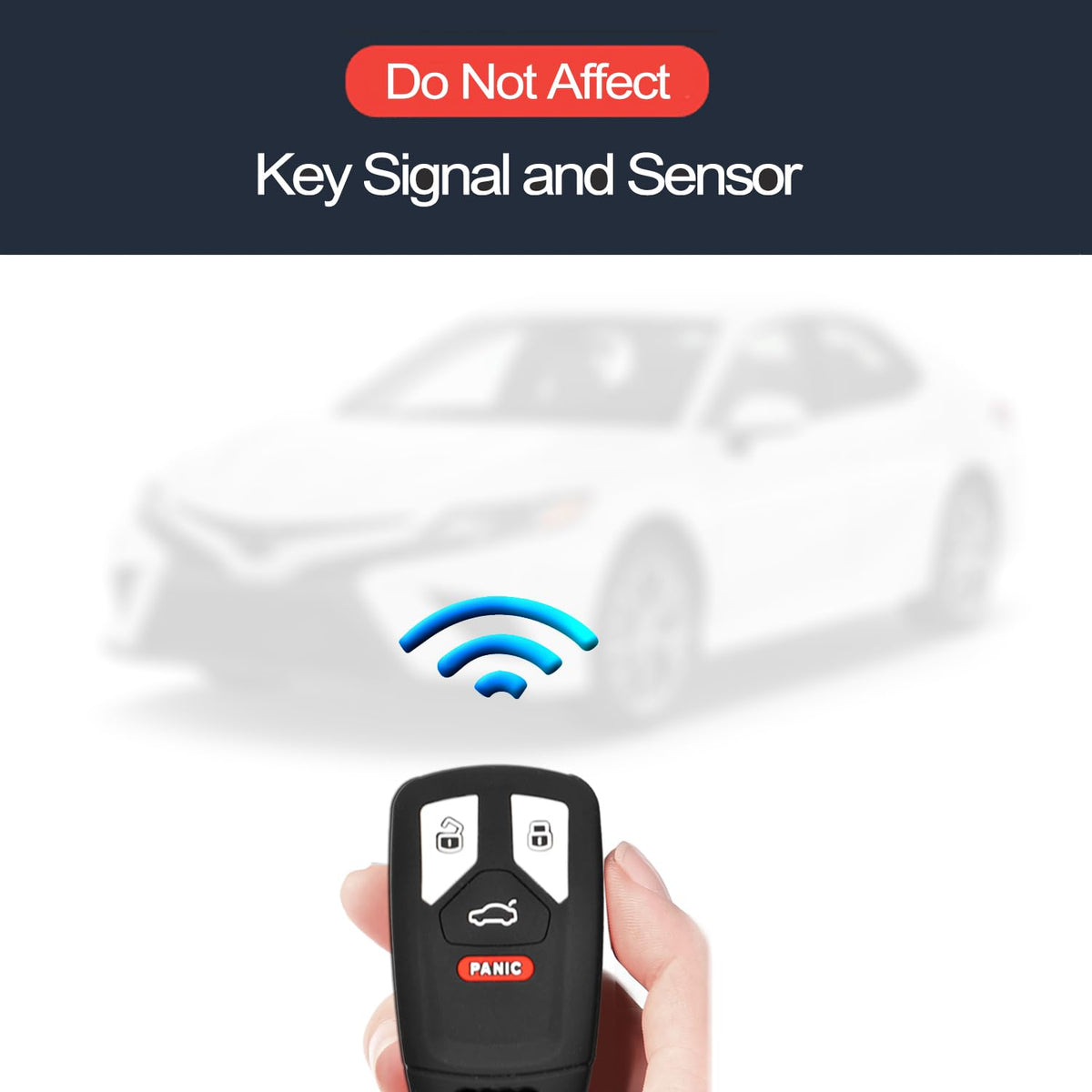 Q: Will the key fob cover affect the signal of my remote?A: No, the key fob cover is designed to not interfere with the key fob's signal or functions. You will still be able to access all features of your key fob without any issues.