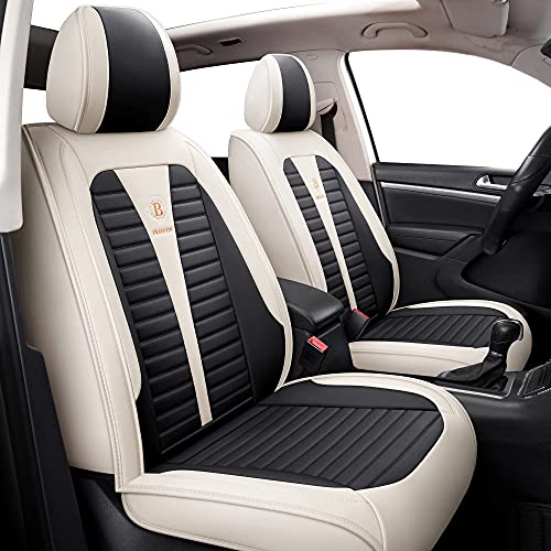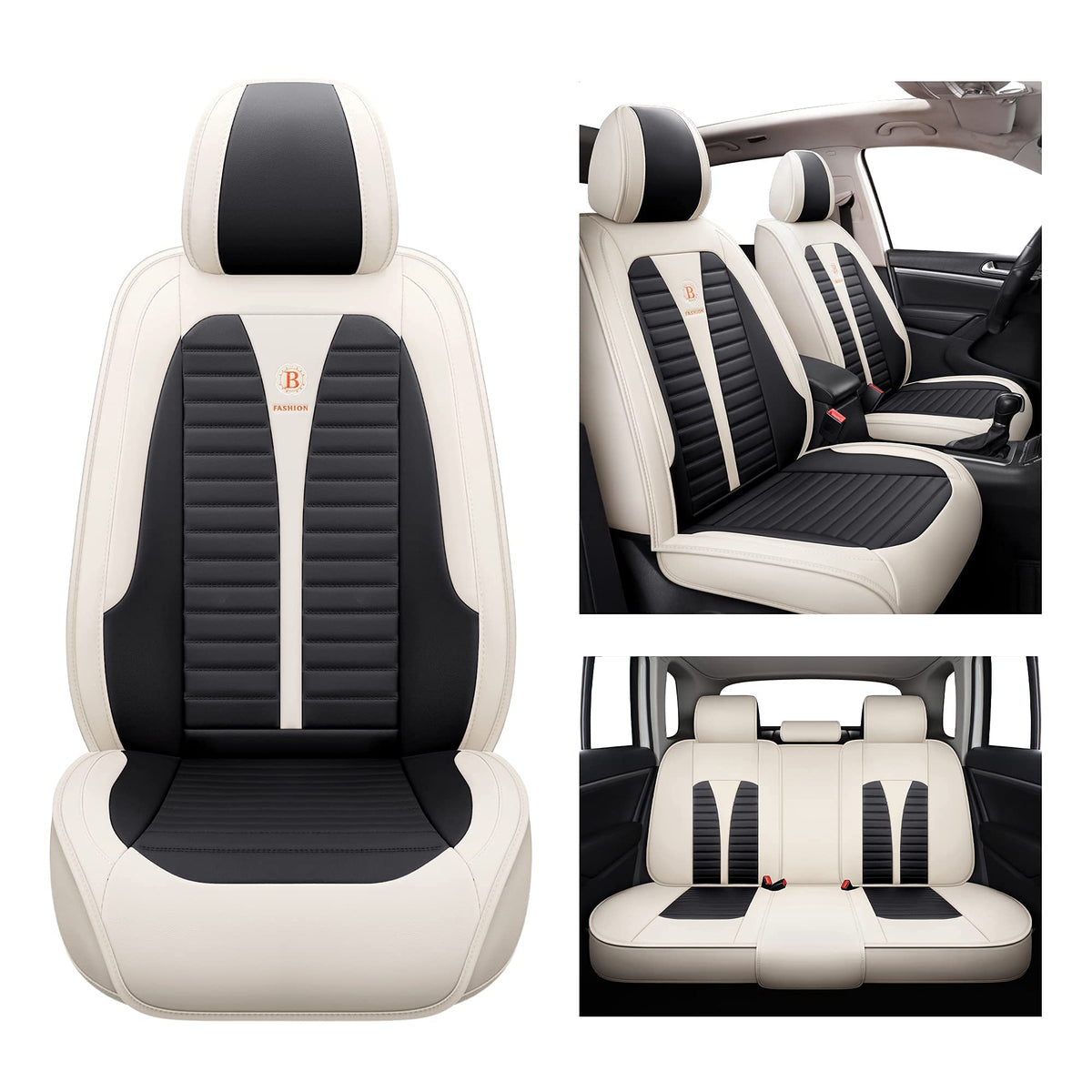 Isen-Coverauto Full Coverage Faux Leather Car Seat Covers Full Set,Automotive Seat Covers For Cars,Suvs Pick-Up Truck, Car Seat Cushion, Black And Cream Seat Covers For 5 Seats