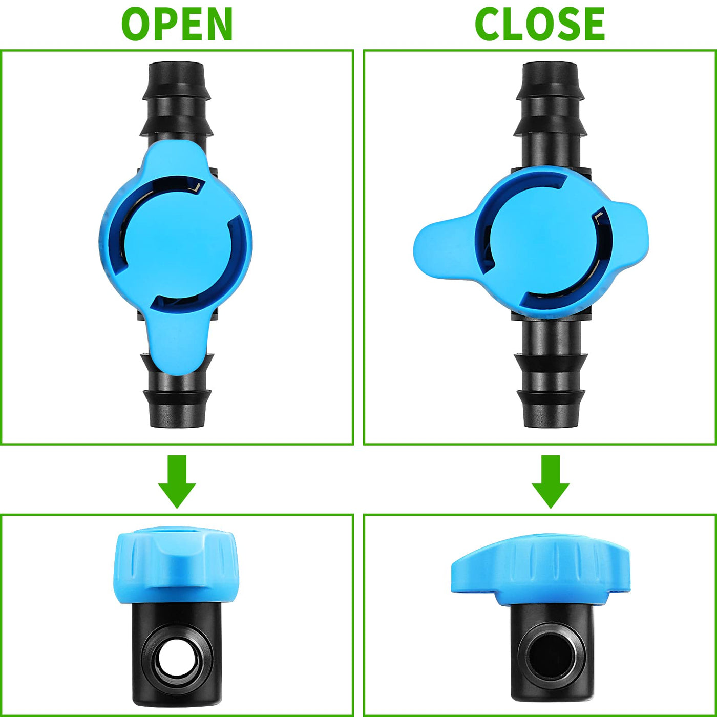 Q: How do I install the drip irrigation valve?A: Installation is straightforward; simply insert the barbed ends of the valve into the ends of your 1/2 inch drip irrigation tubing. No glue, tools, or clamps are required for a secure, leak-proof connection.