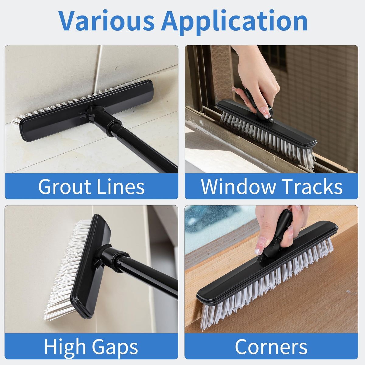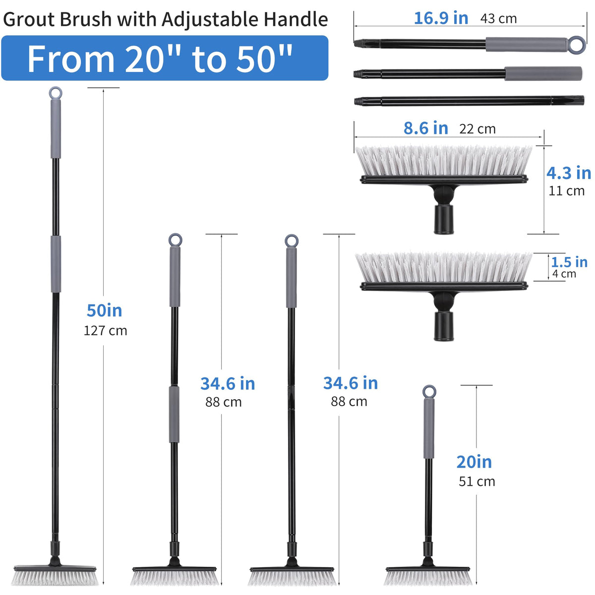 Q: Is the handle adjustable for different cleaning heights?A: Yes, the JEHONN grout brush features a 50-inch long handle that can be adjusted from 20 inches to 50 inches using three metal extension poles, allowing you to clean comfortably without bending over.