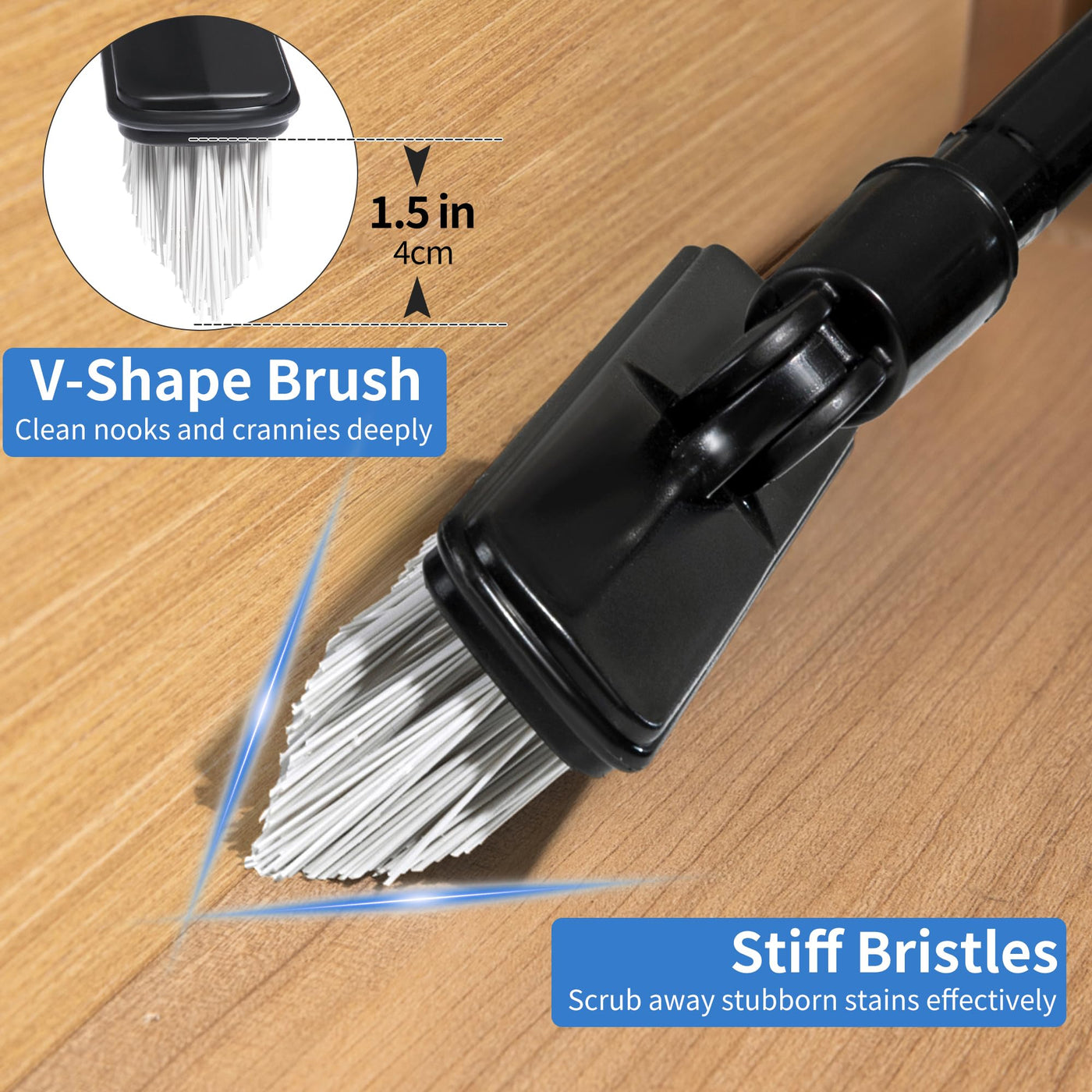 Tired of cleaning gaps, grout lines and corners with toothbrush? Give JEHONN long handled scrub brush for cleaning a try. Features with 50 inches long handle flexible 180-degree rotating cleaning brush head, V-trimmed durable stiff bristles and comfortable grip, this swivel grout brush is a must-have cleaning equipment for your family. It perfectly reaches into small gaps and cleans effectively with ease. No bending over to scrub the stains any more. Besides, the floor scrubber brush has a large hanging hole design. When not using, you can hang it on the wall. It’s portable and space-saving.